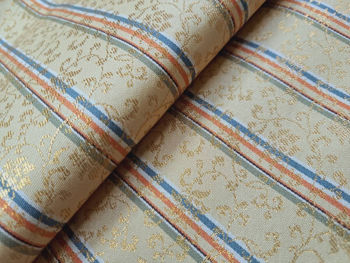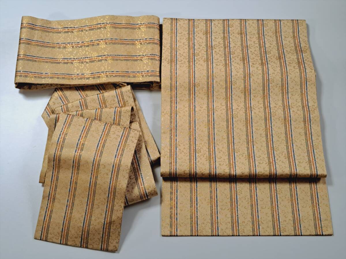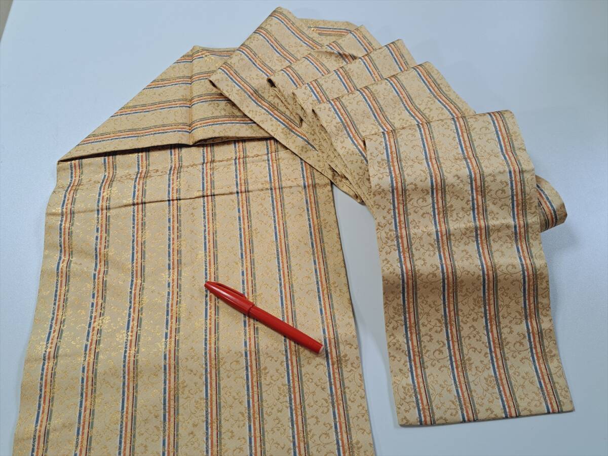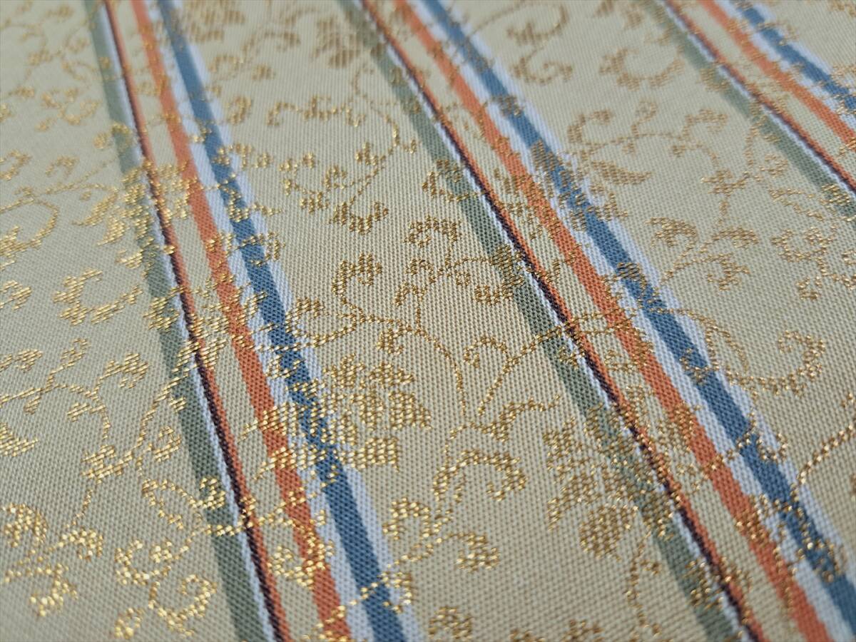 即決■着物の越田■幅30.5長さ367.5 正絹 名古屋帯 ★美品★ 縞 花唐草 名古屋仕立て 金糸有 C◇ひ13J16
