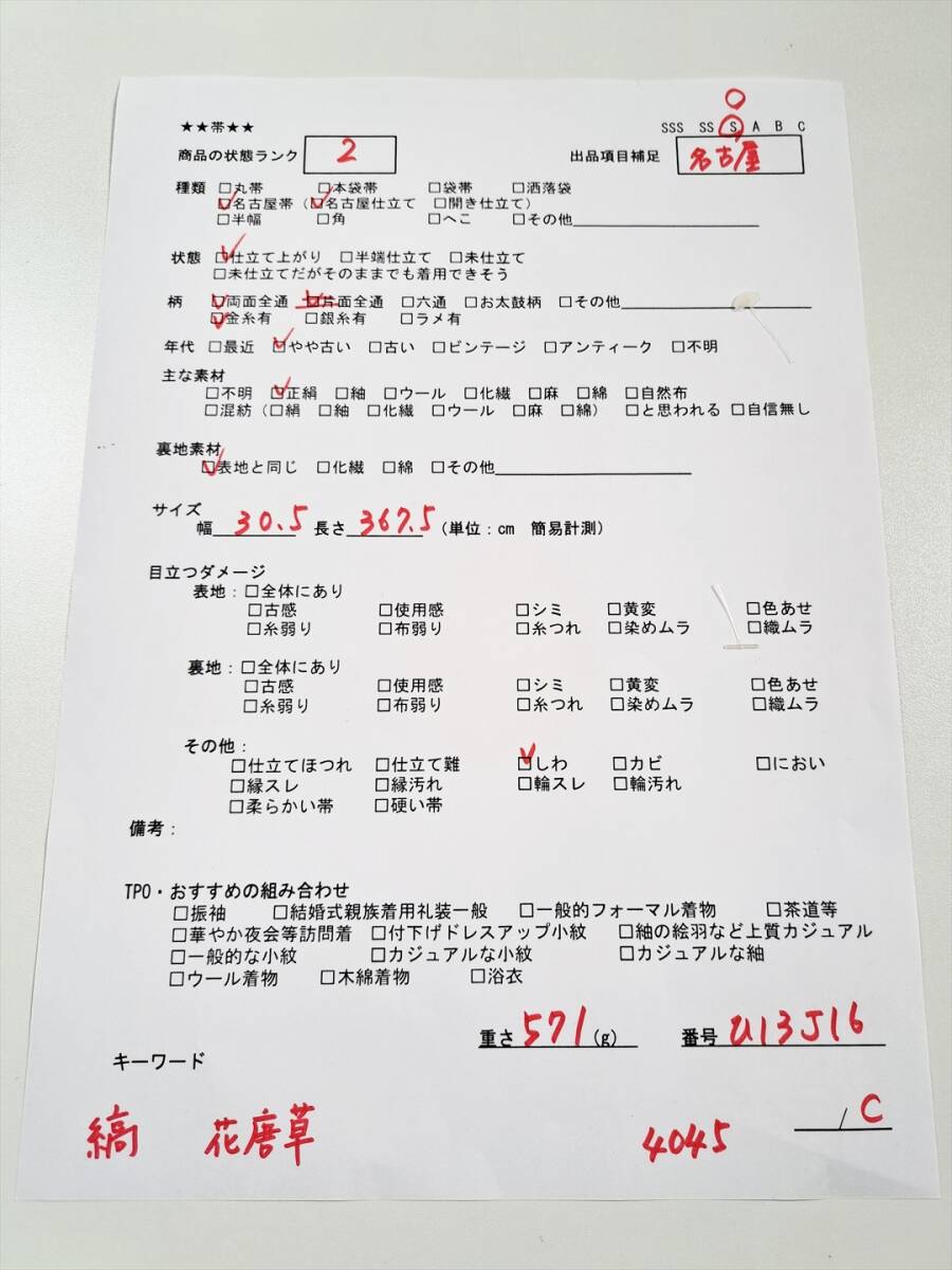 詳しくは写真2枚目の検品用紙の画像をご確認下さい。