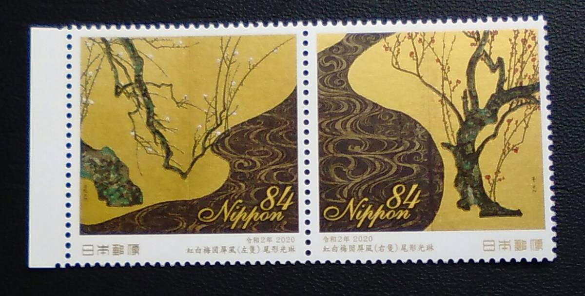 2020年・特殊切手-切手趣味週間(紅白梅図屏風)連刷ペア