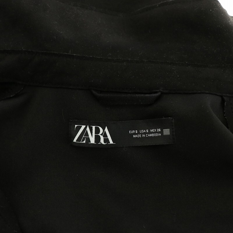 ザラ ZARA シャツジャケット ブラウス 長袖 スエード S ブラック 8372/033/800 /NQ レディース