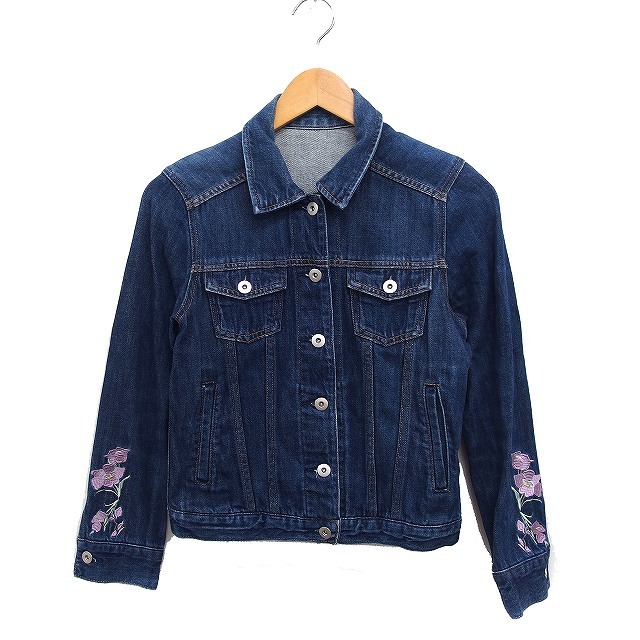 ミッシュマッシュ MISCH MASCH Gジャン ジージャン デニム ジャケット 花刺繍 38 ネイビー 紺 /FT16 レディース
