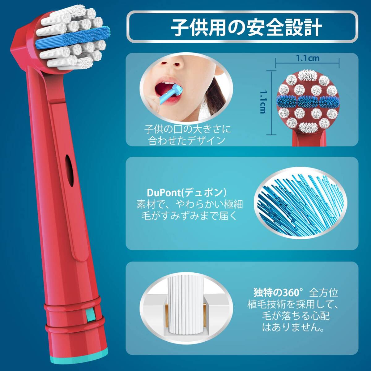 [歯ブラシの交換時期]:古い歯ブラシほど雑菌が繁殖しやすい、毛先が広がると洗浄効果も激減していますので、高い歯垢除去率をキープするため、歯科医は、少なくとも1ヶ月ごとに歯ブラシヘッド(オーラルb 用 替えブラシ 子供)を交換することをお勧めします。また、毛が落ちないようにする独特の360°全方位植毛技術を採用しています。Trustnice 歯ブラシを選ぶことから、子供に自分で歯を磨くことを覚えていきましょう!