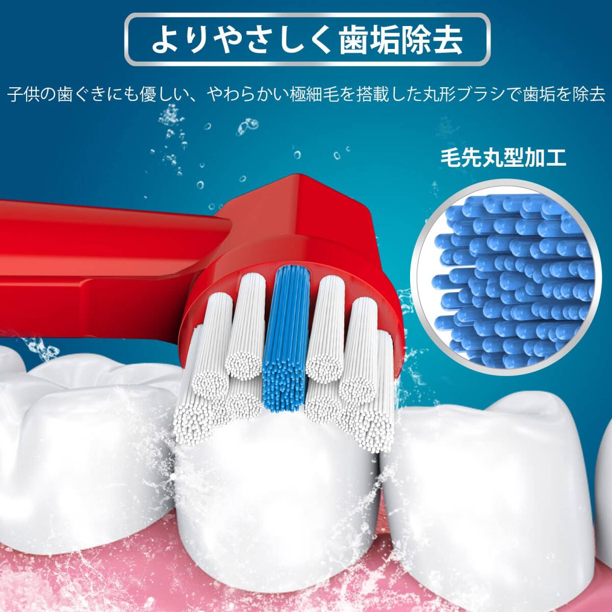 [子供用やわらかめブラシ]:歯科先進国アメリカで開発され、柔らかくデュポン素材で作られた高品質のブラウン用の替ブラシ キッズ用です。毛先が丸めた高精度なラウンド加工を施していますので、歯表面と歯間の奥まで優れた除去力で、子供の歯面や歯肉にやさしく、虫歯になるリスクを軽減し、子供の毎日のオーラルケアにぴったり
