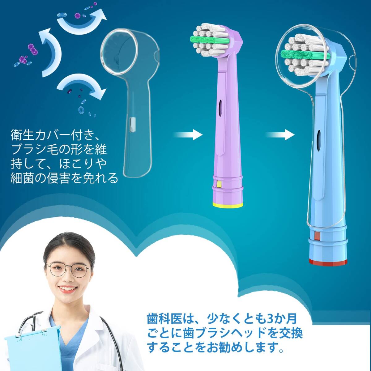 [衛生カバー付き&安心]:ブラウン 替え 対応の 歯ブラシ キッズ用は衛生カバーが付属して、ブラシ毛の形を維持して、ほこりや細菌の侵害を免れることもできます。1本ずつ専用袋にて個包装。ご兄弟やお友達とシェアしたり、プレゼントにもおすすめ。本製品(oral b 用の替え 子供)に1年品質をお付け致して、何か初期不良やご使用中不具合などがございましたら、直接に弊店にご連絡くださいませ。