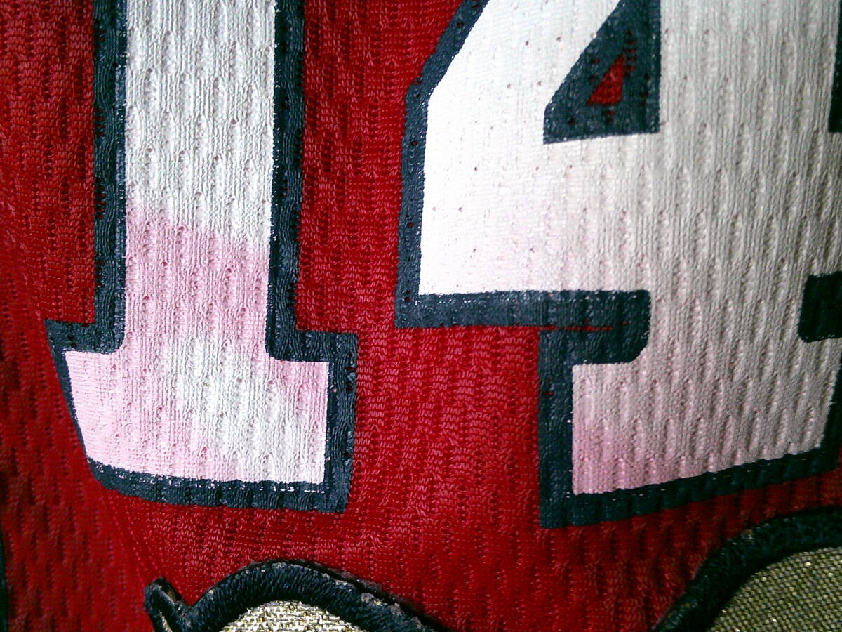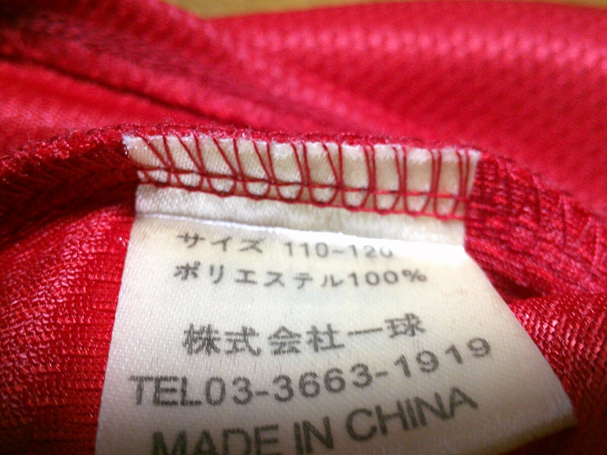 ユニフォーム前面・左下14番部に微かにピンク色のシミがあります