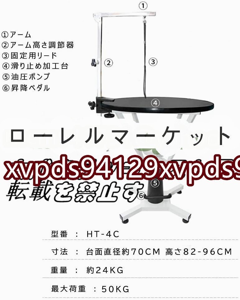 品質保証☆小型犬から中型犬まで対応 油圧式 昇降機能付き トリミングテーブル アーム付属 台面直径 70cm