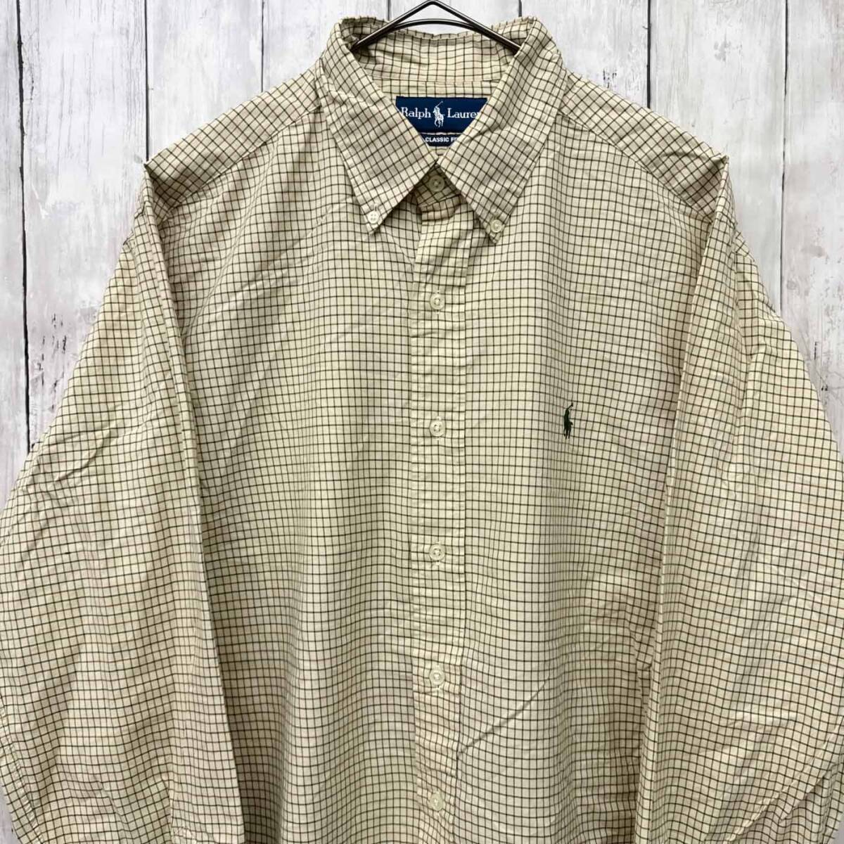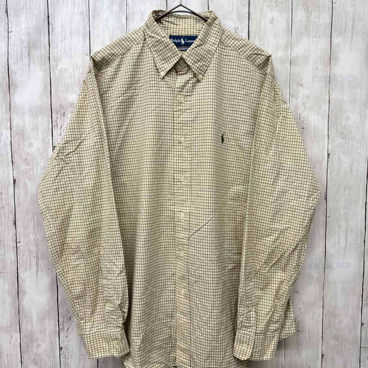 ラルフローレン Ralph Lauren CLASSIC FIT チェックシャツ 長袖シャツ メンズ ワンポイント コットン100% Lサイズ 6-175