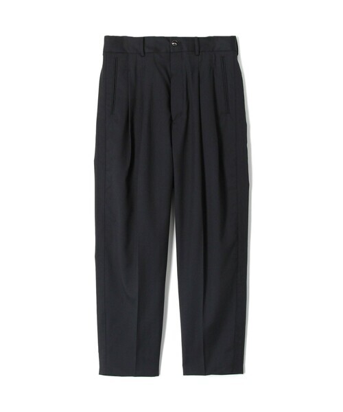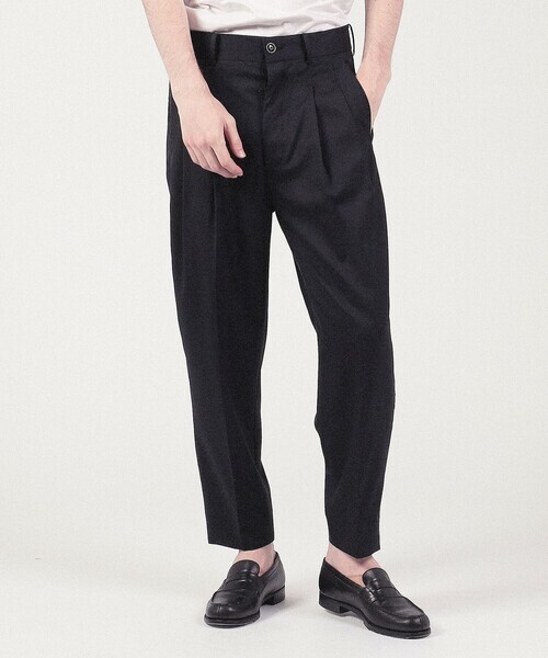 アウト2プリーツの腰回りにボリュームを持たせ、程良くテーパードを効かせたプリーツパンツ。