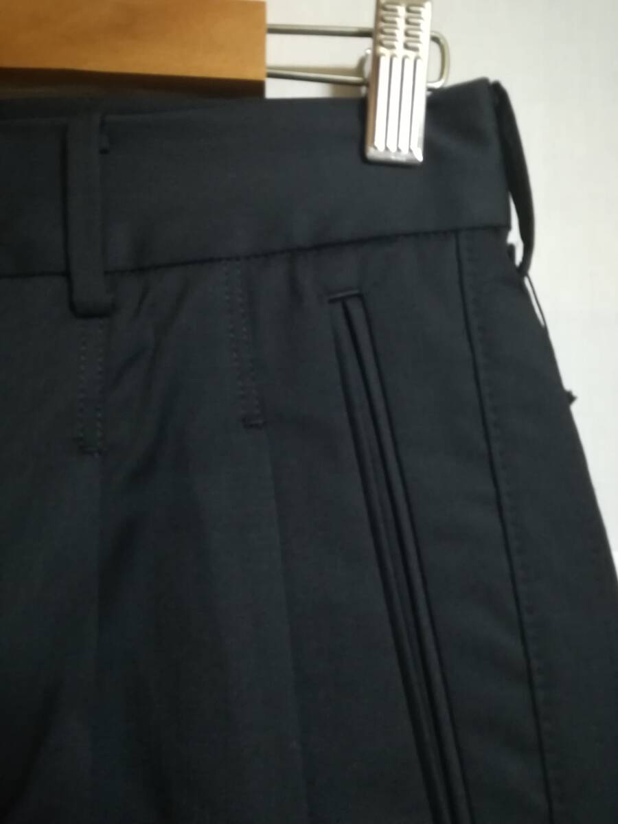 ヒップポケットには、使用した服地の耳を付けたストレートパンツ。