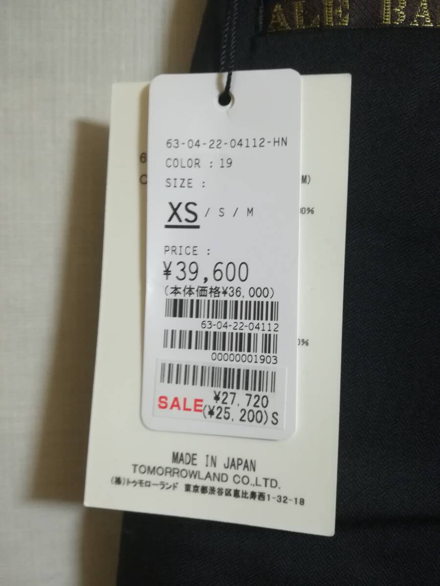 新品 TOMORROWLAND ウール ヘリンボーン 2プリーツパンツ ブラック