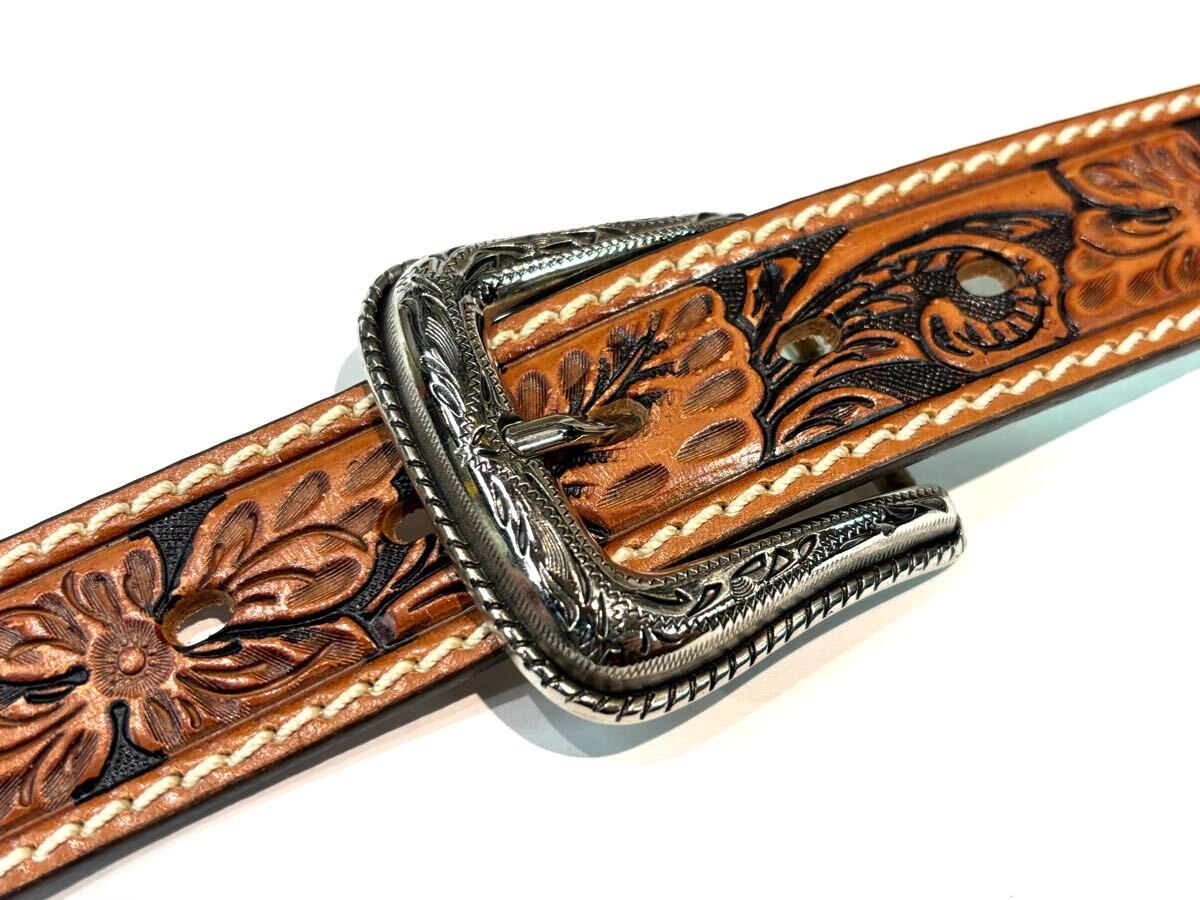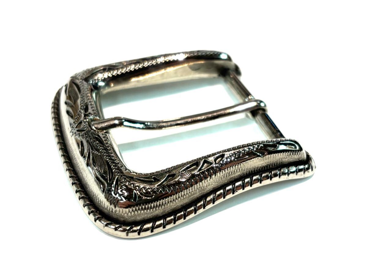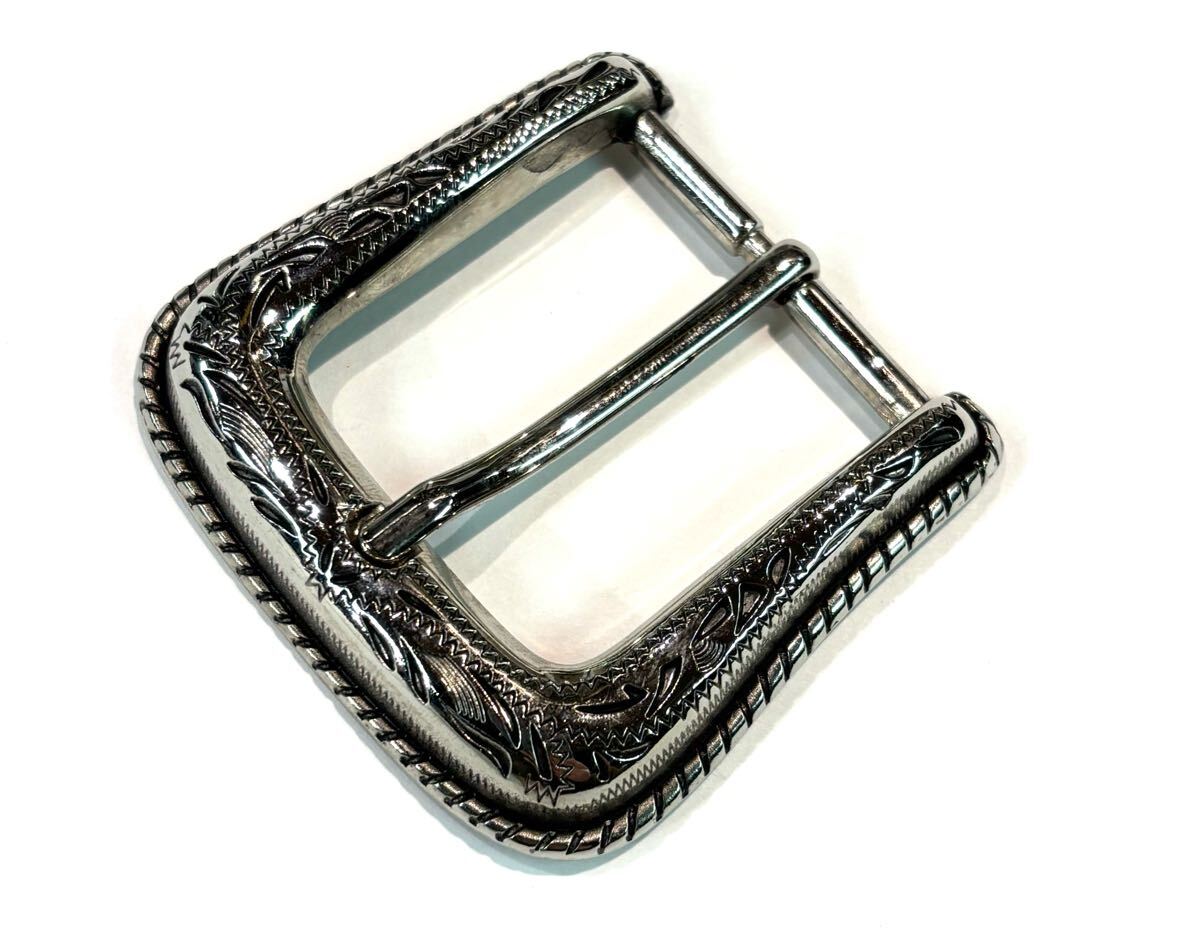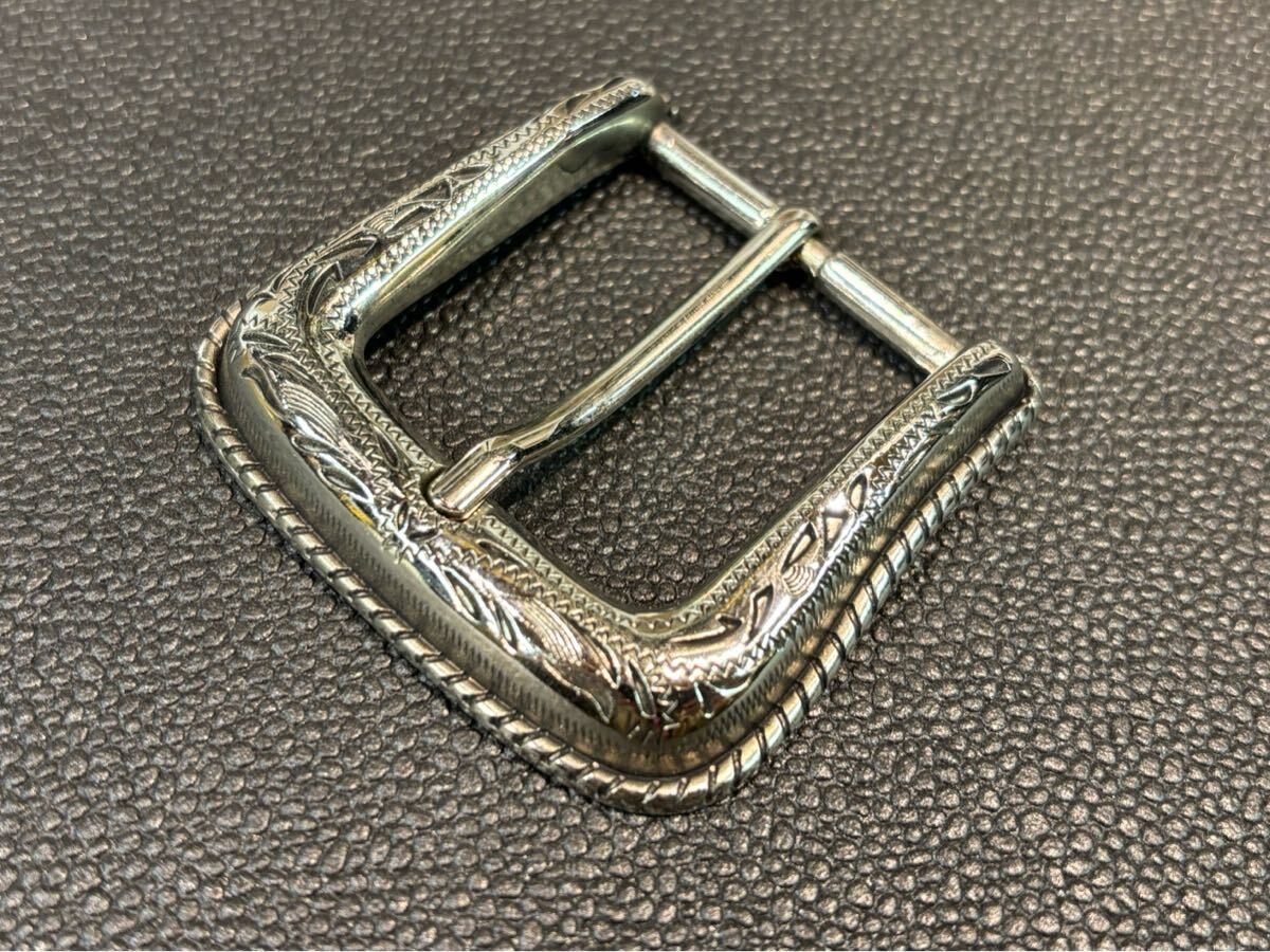 ウエスタン ピンバックル 通しバックル 新品 未使用 カービング シルバー カラー アメリカン インチ ブラック