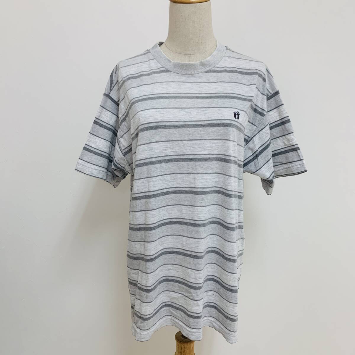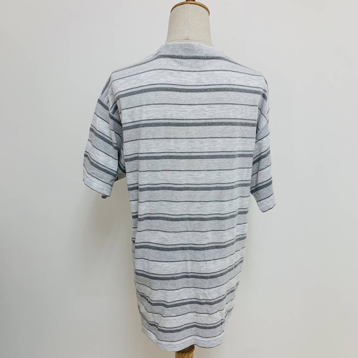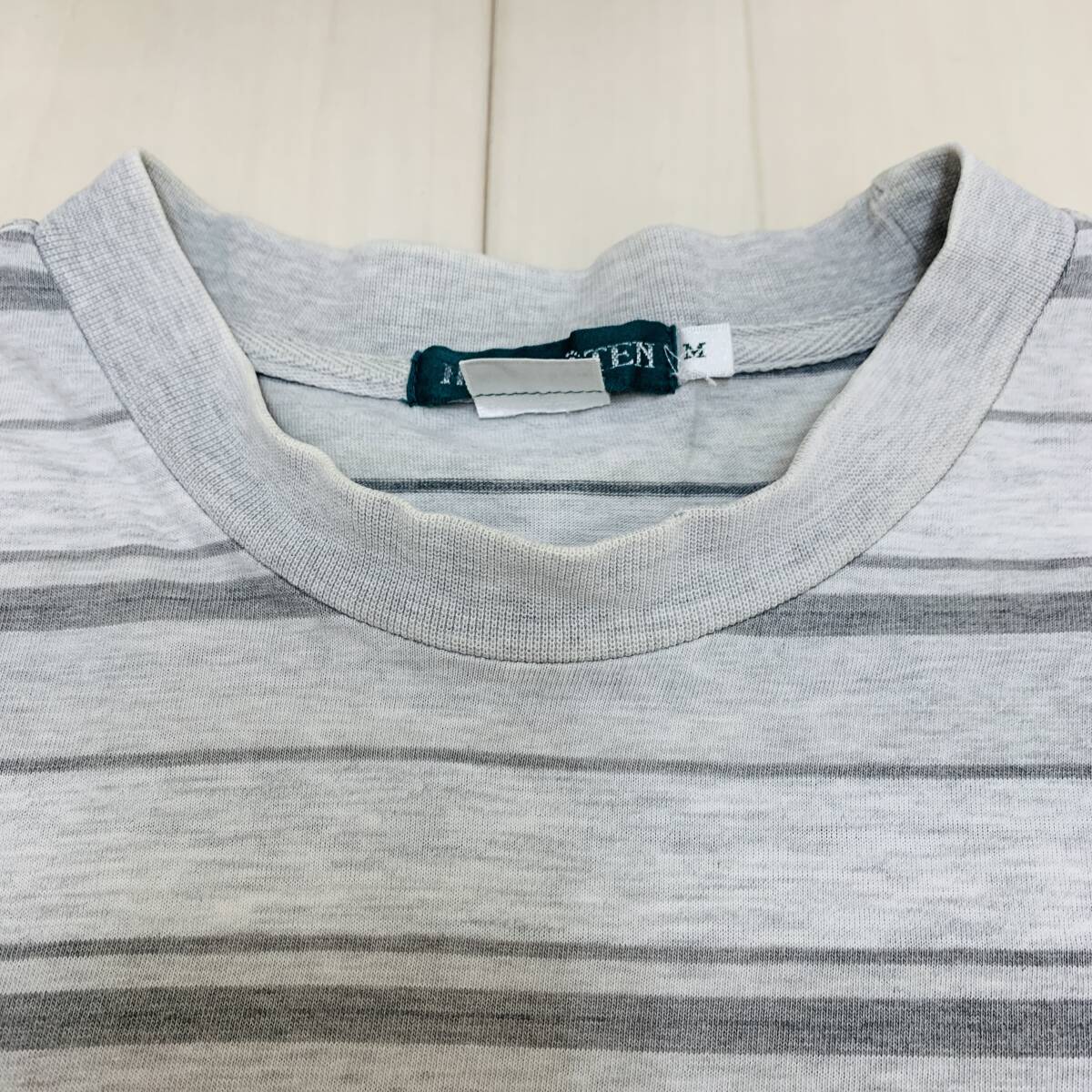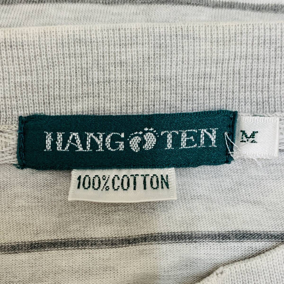 YH2335 HANG TEN メンズ ボーダー柄 半袖 Tシャツ 丸首 グレー ロゴ刺繍 Mサイズ カジュアルスタイル シンプルコーデ 万能 USED 古着