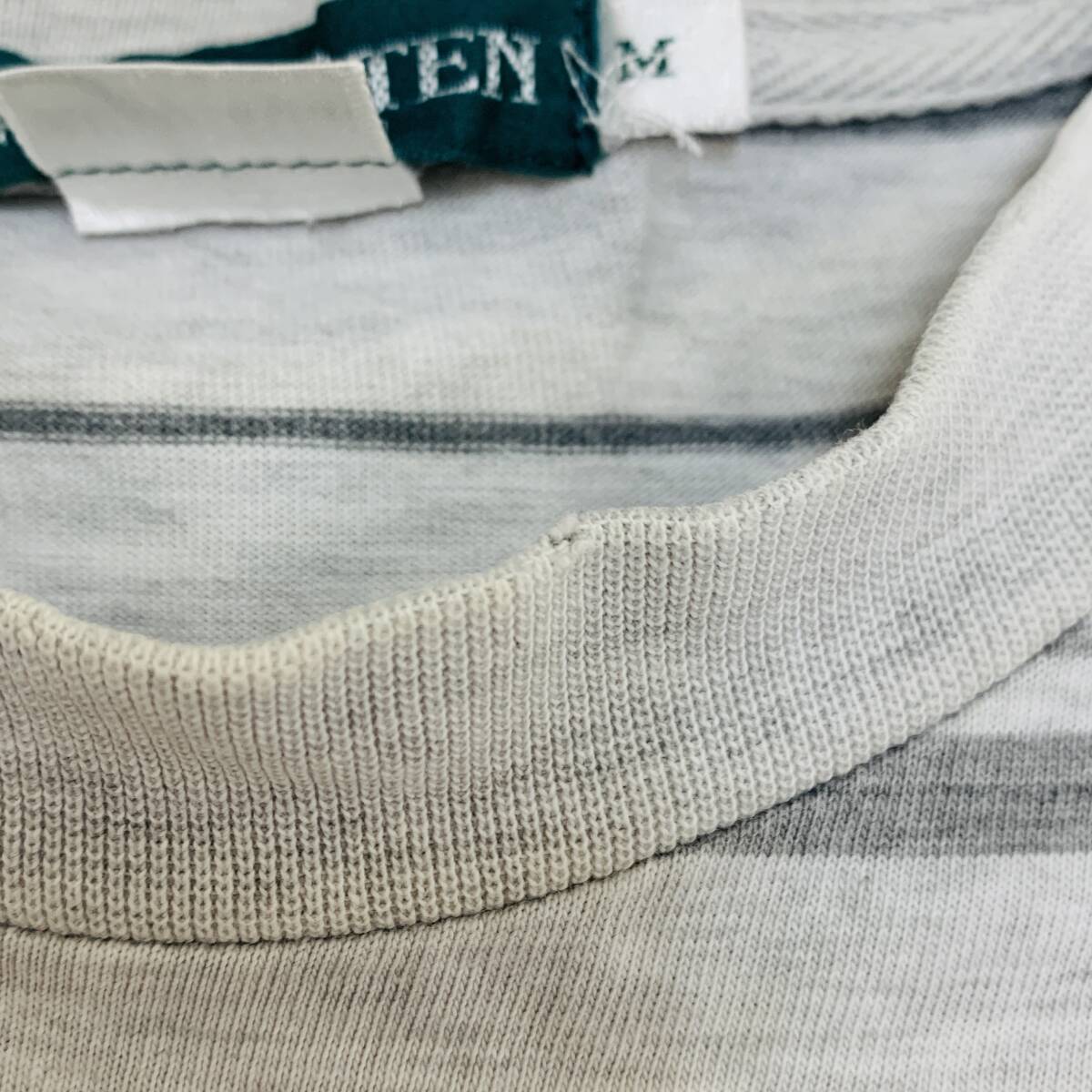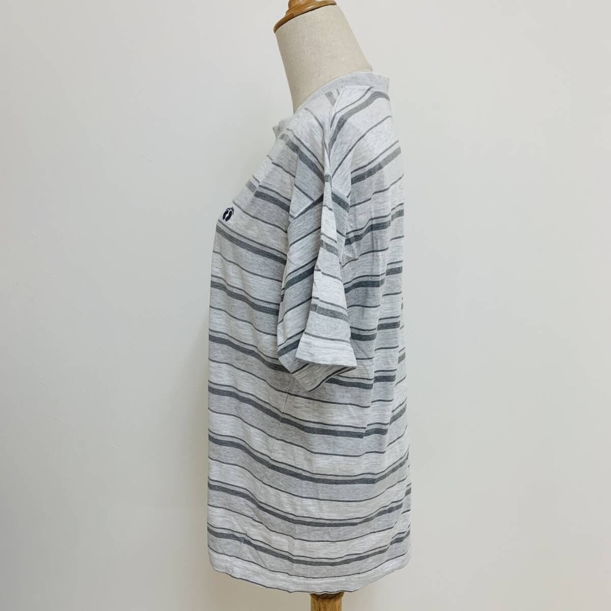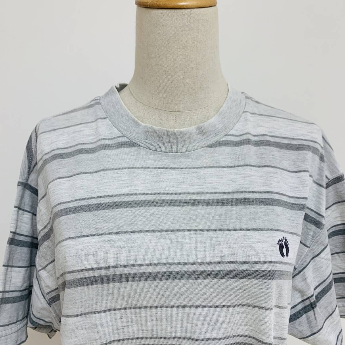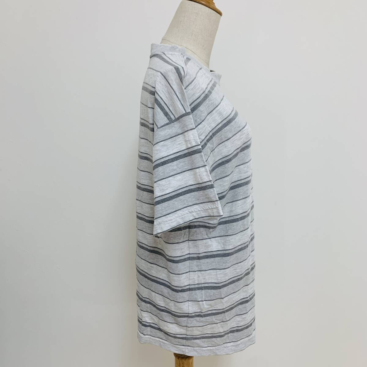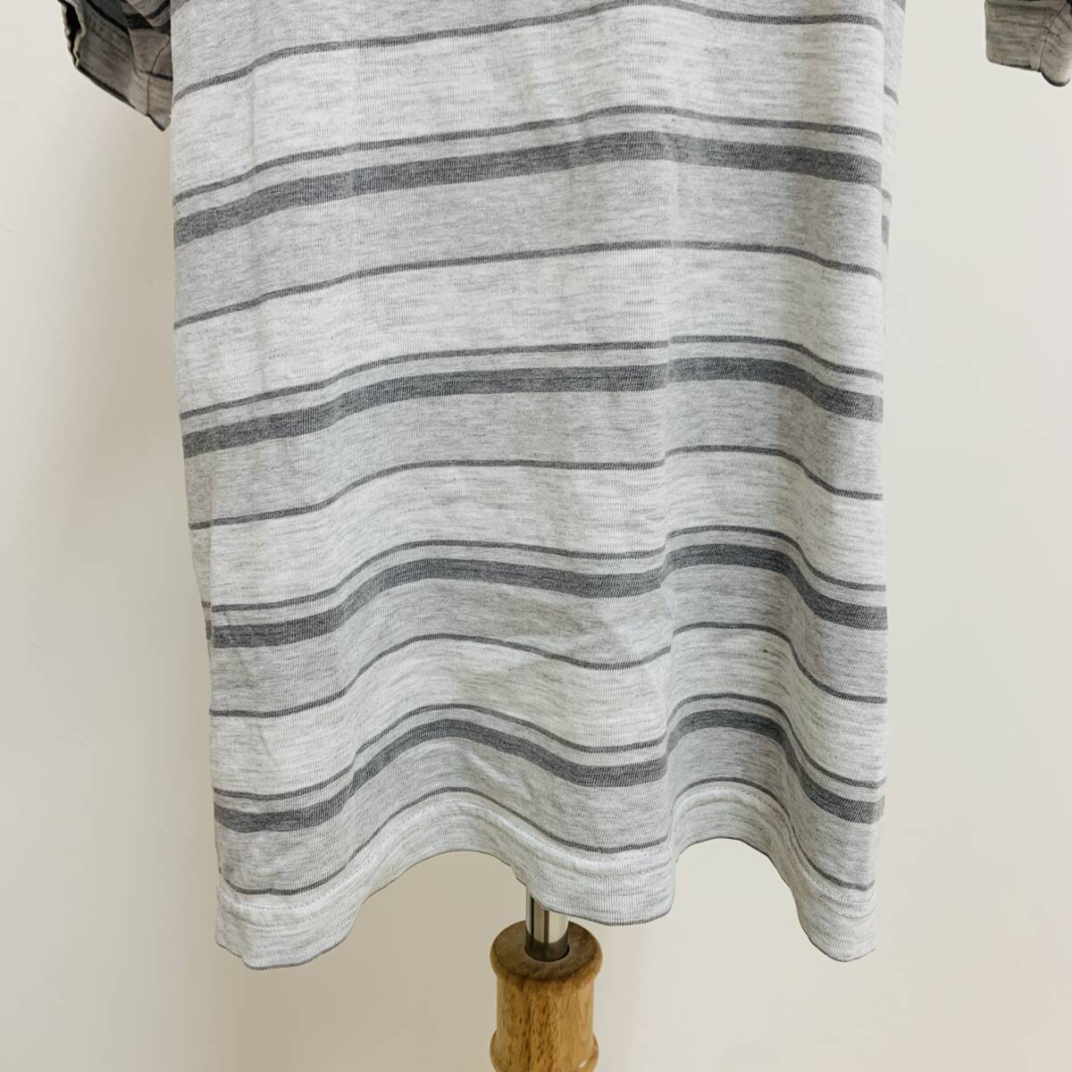 YH2335 HANG TEN メンズ ボーダー柄 半袖 Tシャツ 丸首 グレー ロゴ刺繍 Mサイズ カジュアルスタイル シンプルコーデ 万能 USED 古着