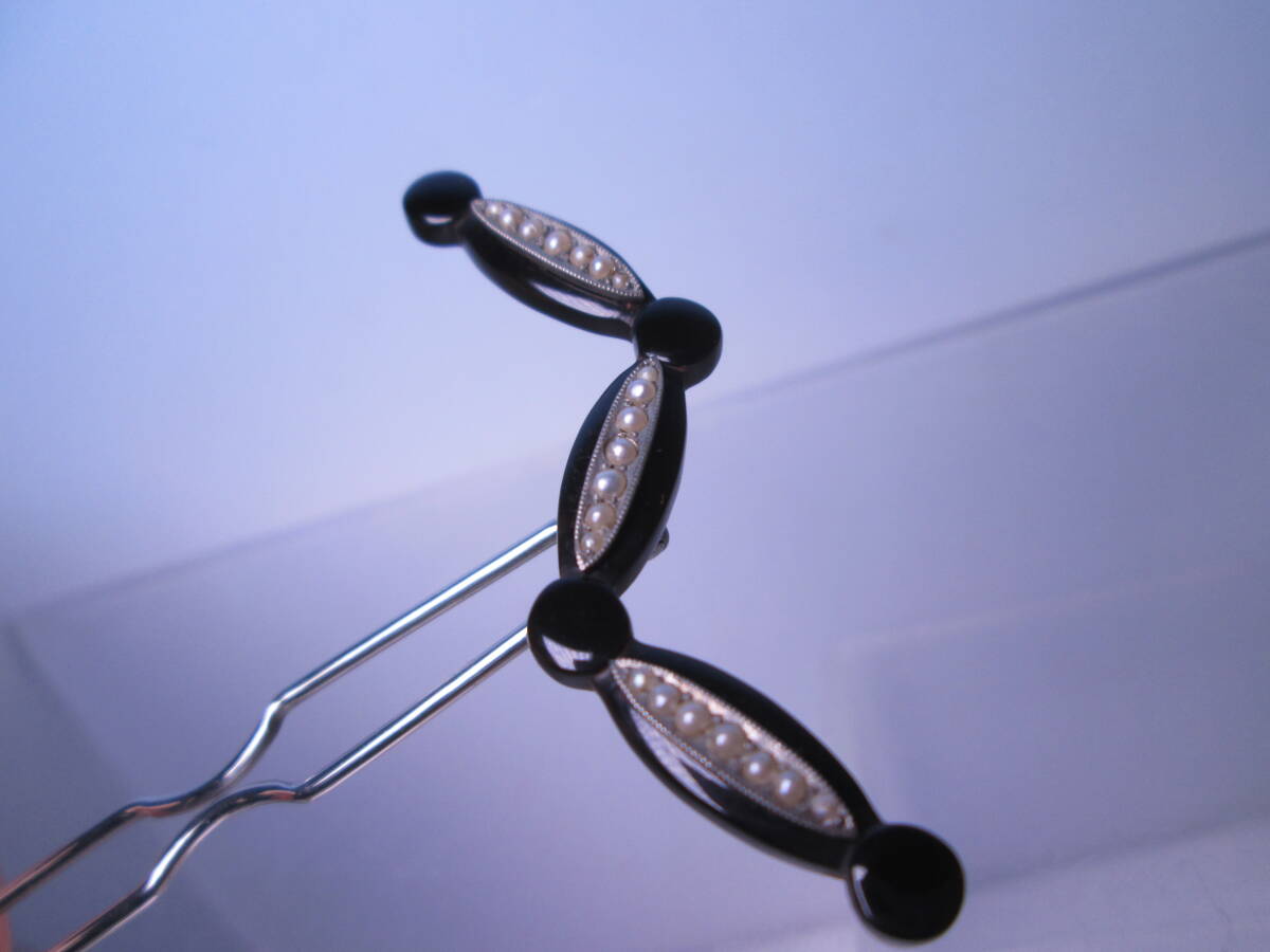 【江月】アンティーク・本鼈甲 ケシパール飾りのかんざし 木箱付