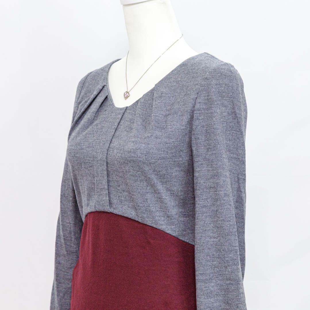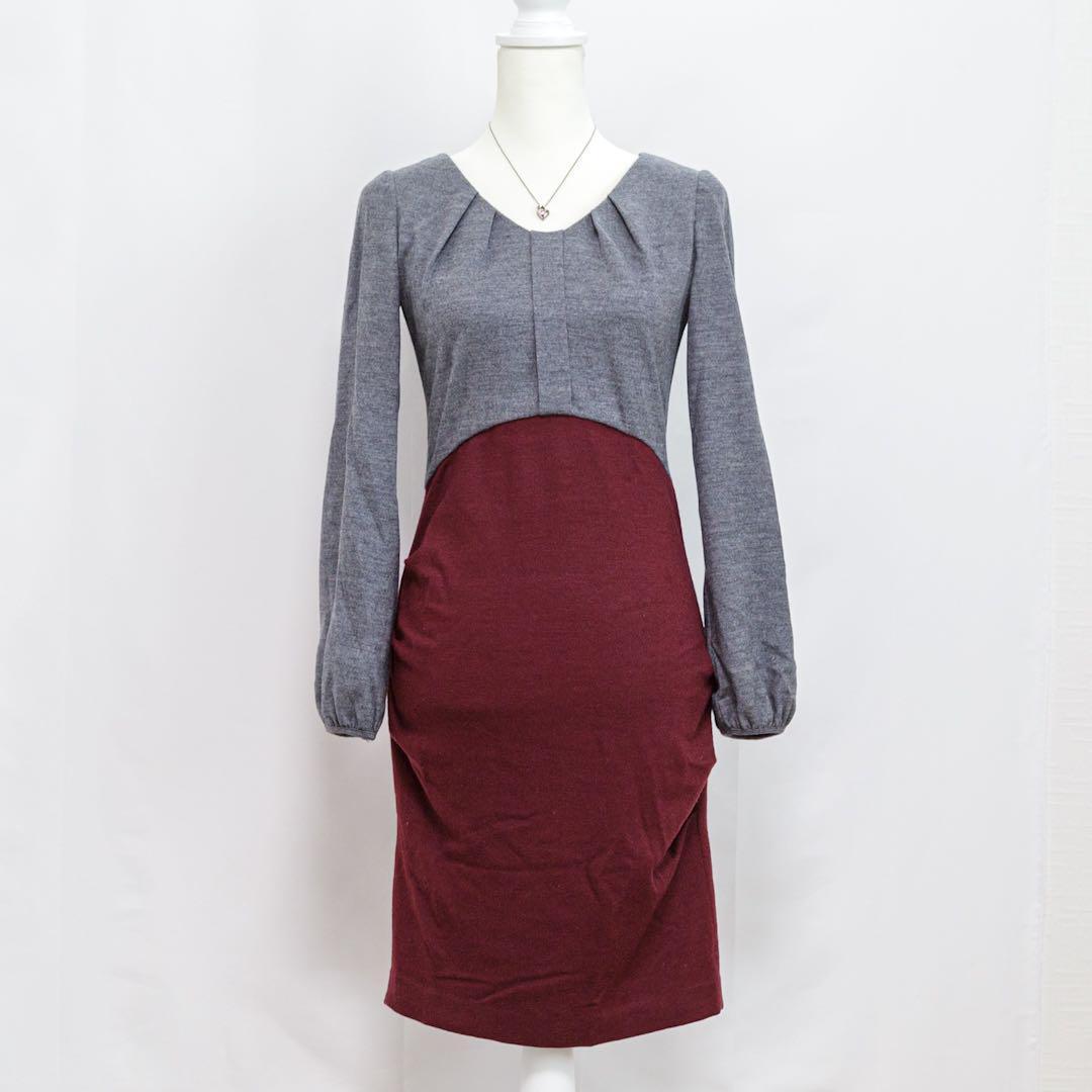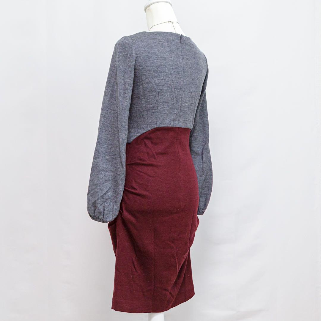バイカラー 長袖Iラインタイトワンピース ひざ丈 バックファスナー 裏地あり