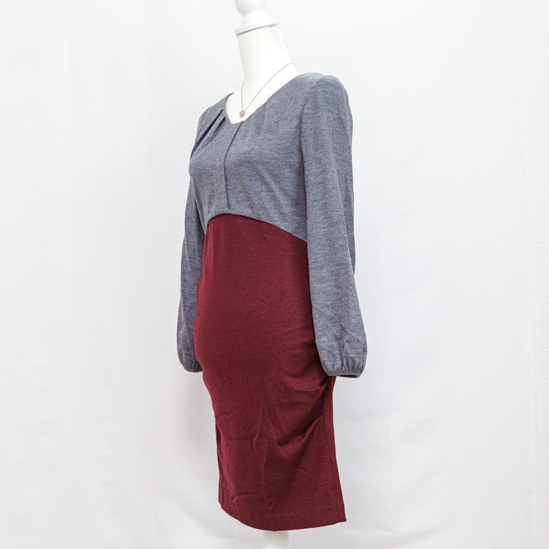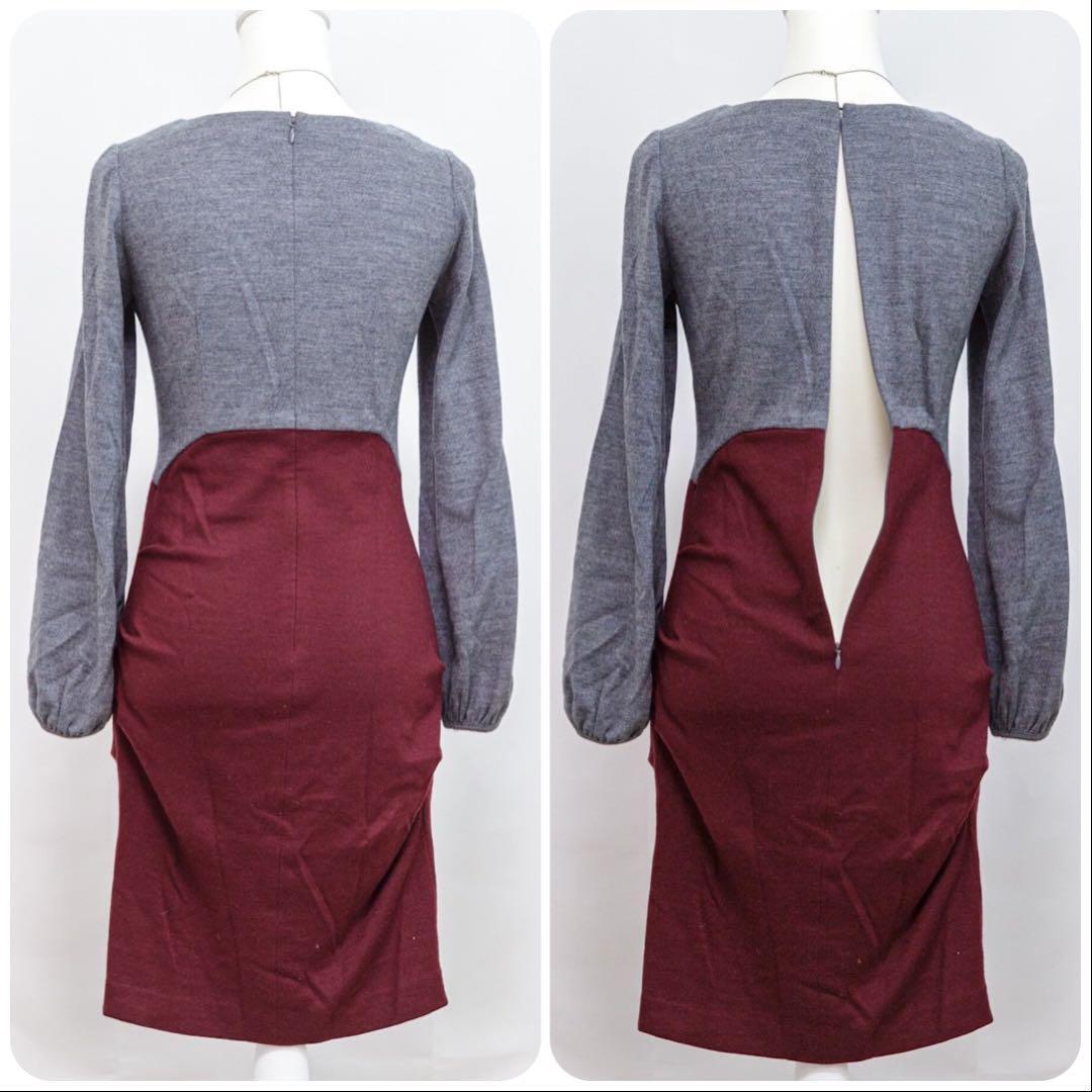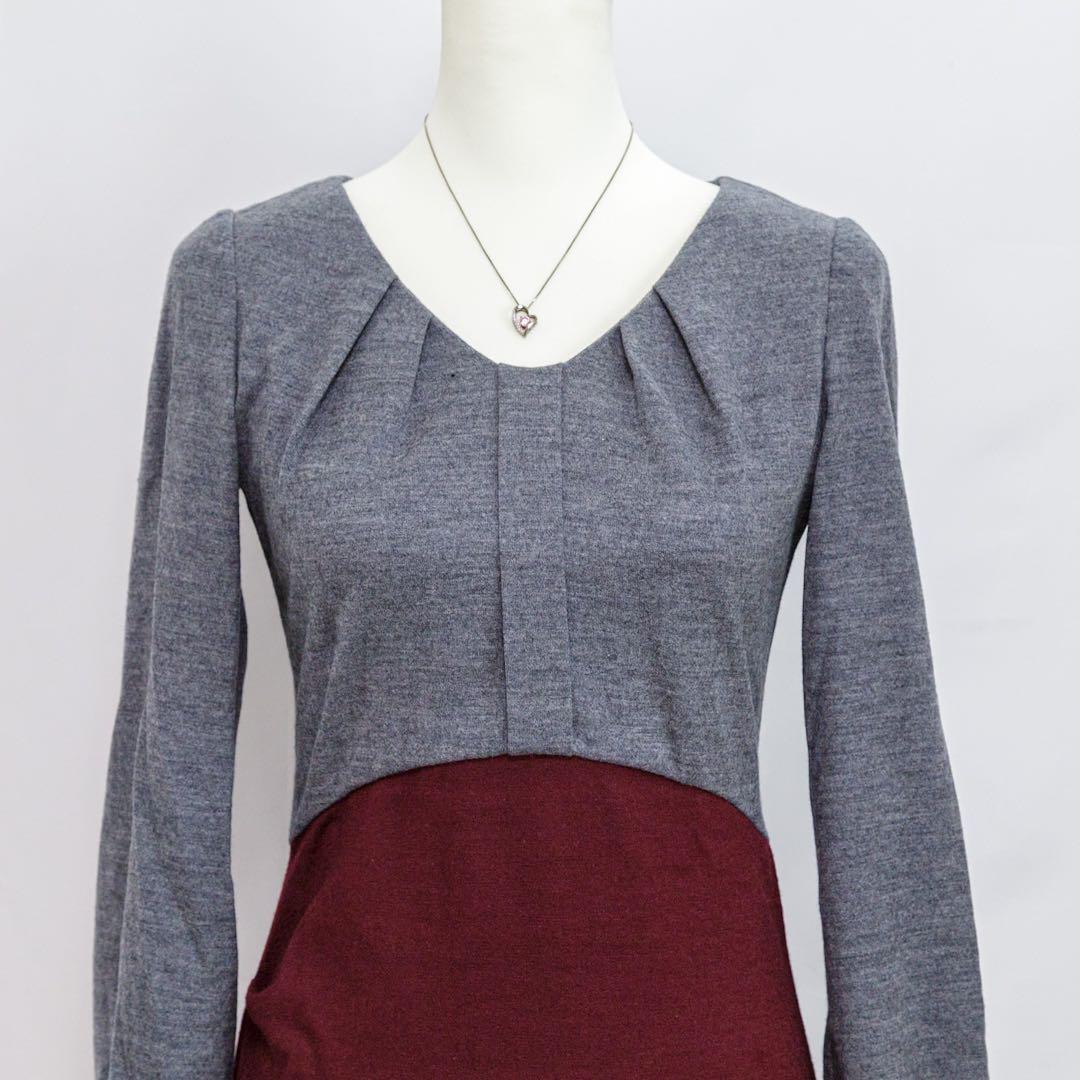 バイカラー 長袖Iラインタイトワンピース ひざ丈 バックファスナー 裏地あり