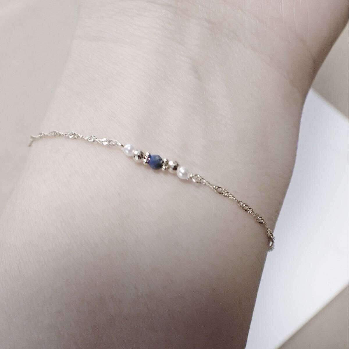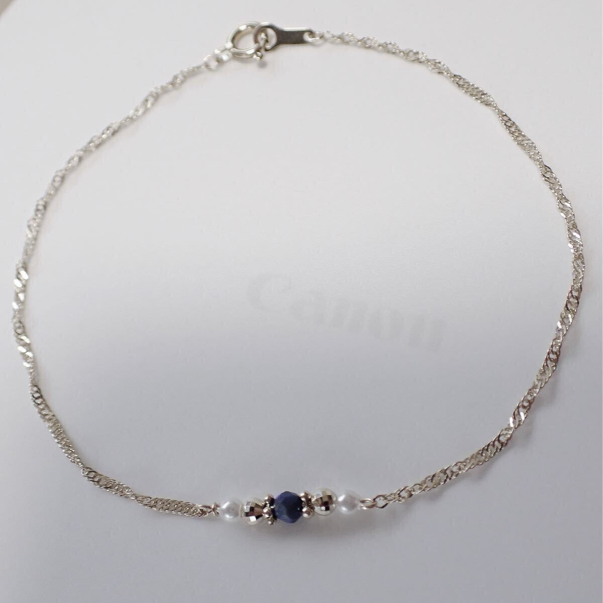 pt850 24cm プラチナ ラピスラズリブレスレット スクリューチェーン0.9mm ミラーボール2.5mm