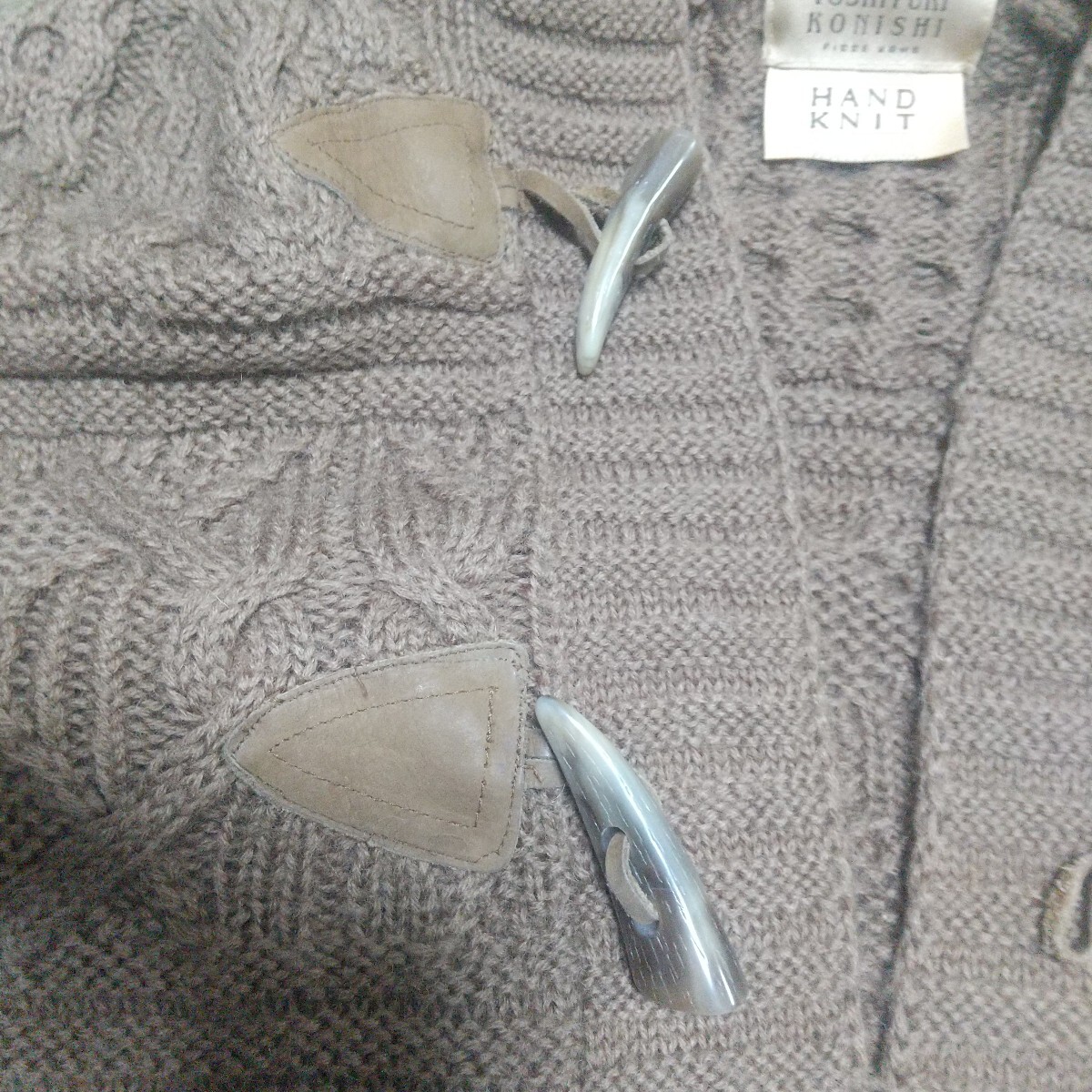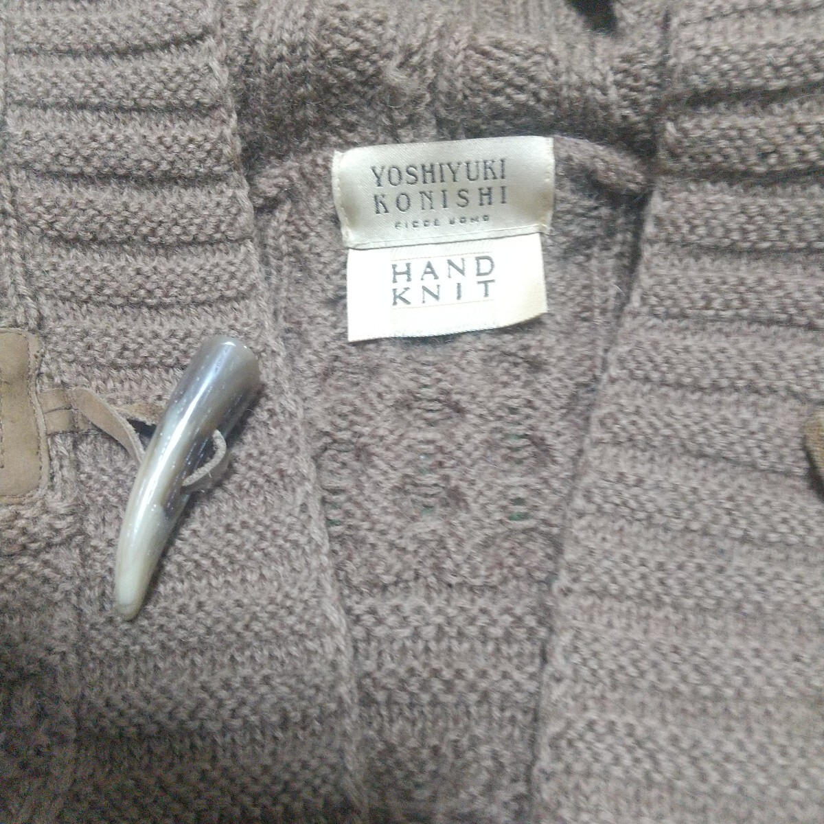 KONISHI YOSHIYUKI(ドン小西)のハンドニットカーディガンです!フード付きです。もう手に入りません!当時は高額で販売されていました!タンスにしまったままでした。サイズは身幅58、着丈74、袖を画像のように折った状態で64センチです。大切に保管しておりましたので綺麗です!当方はタバコすいません、ペットはおりません!
