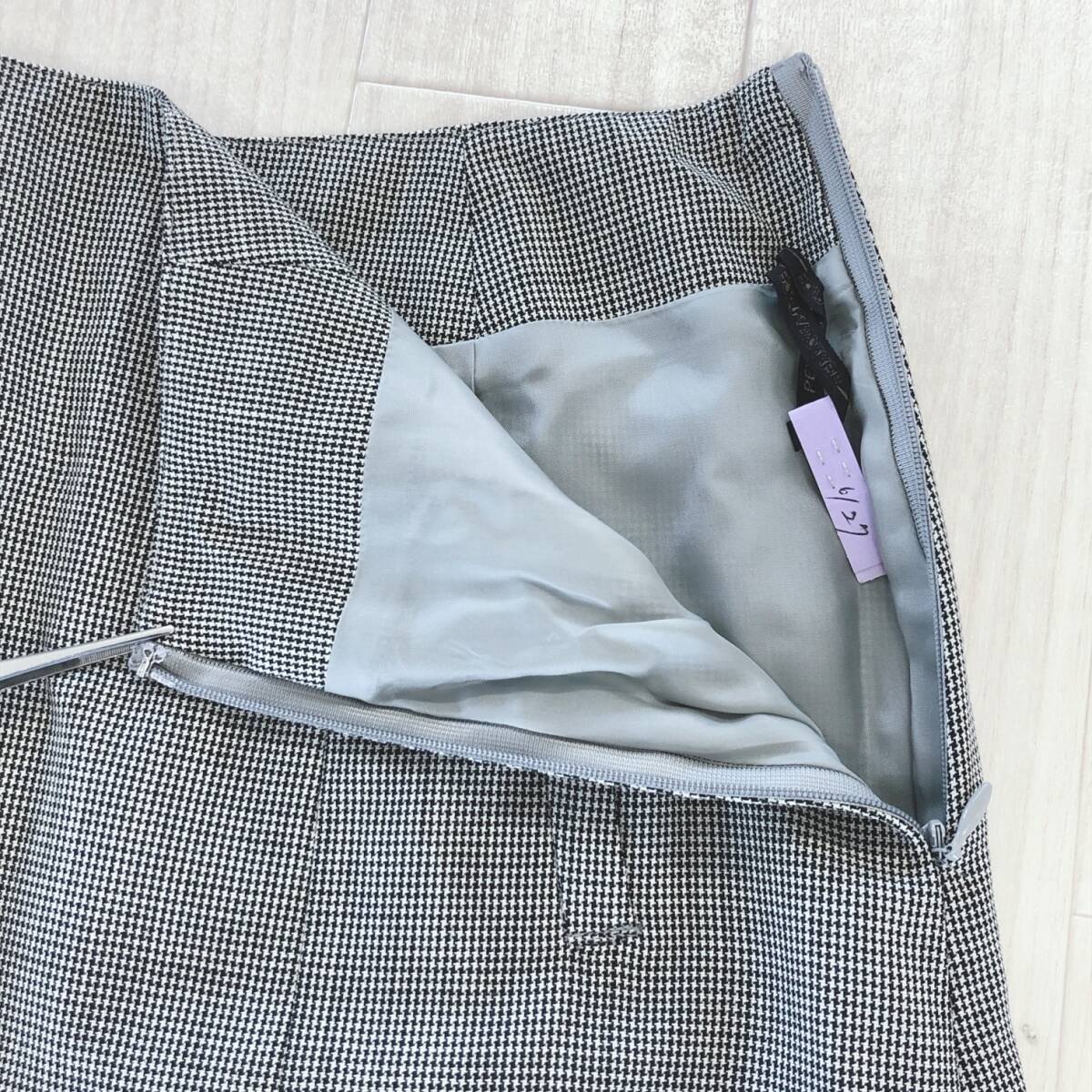 YX1486 美品 PEYTON PLACE ペイトンプレイス レディース スカート 薄手 クリーニング済 サイドポケット 黒 白 千鳥格子 毛100% オフィス