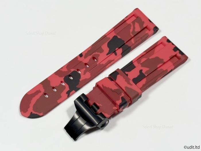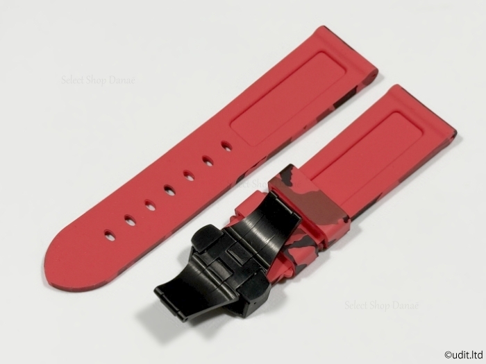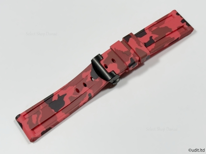 ラグ幅24mm パネライ対応 腕時計ラバーベルト レッド迷彩 カモフラージュ 時計用バンド ブラック ルミノール マリーナ ラジオミール 等に