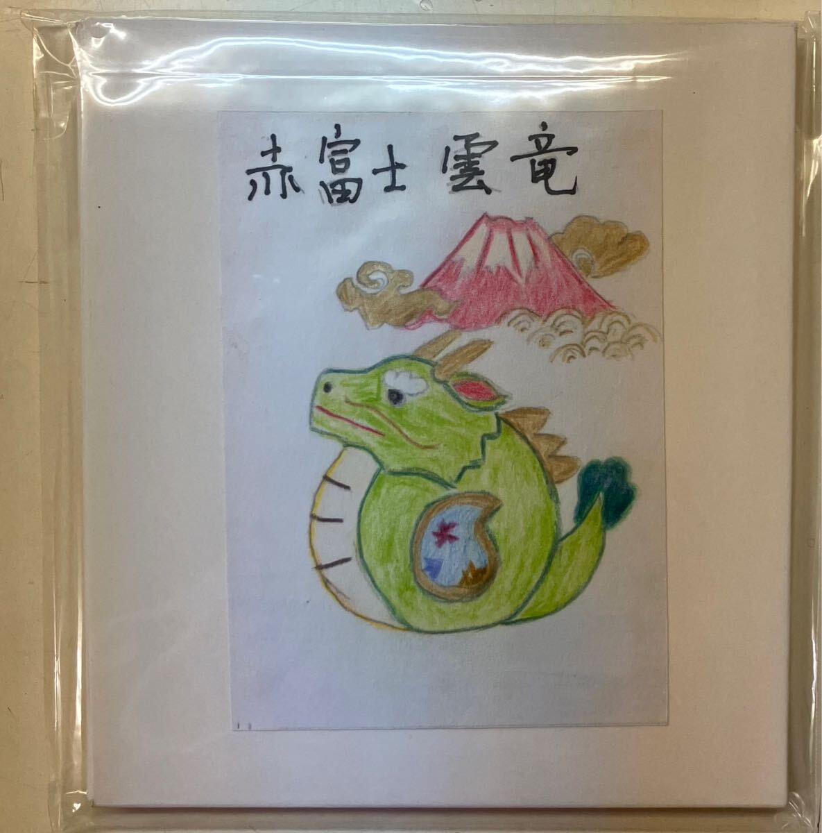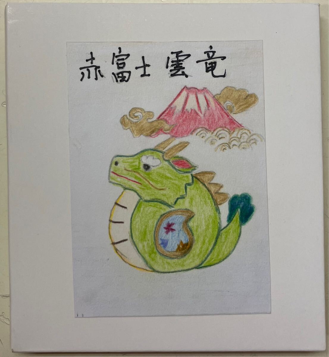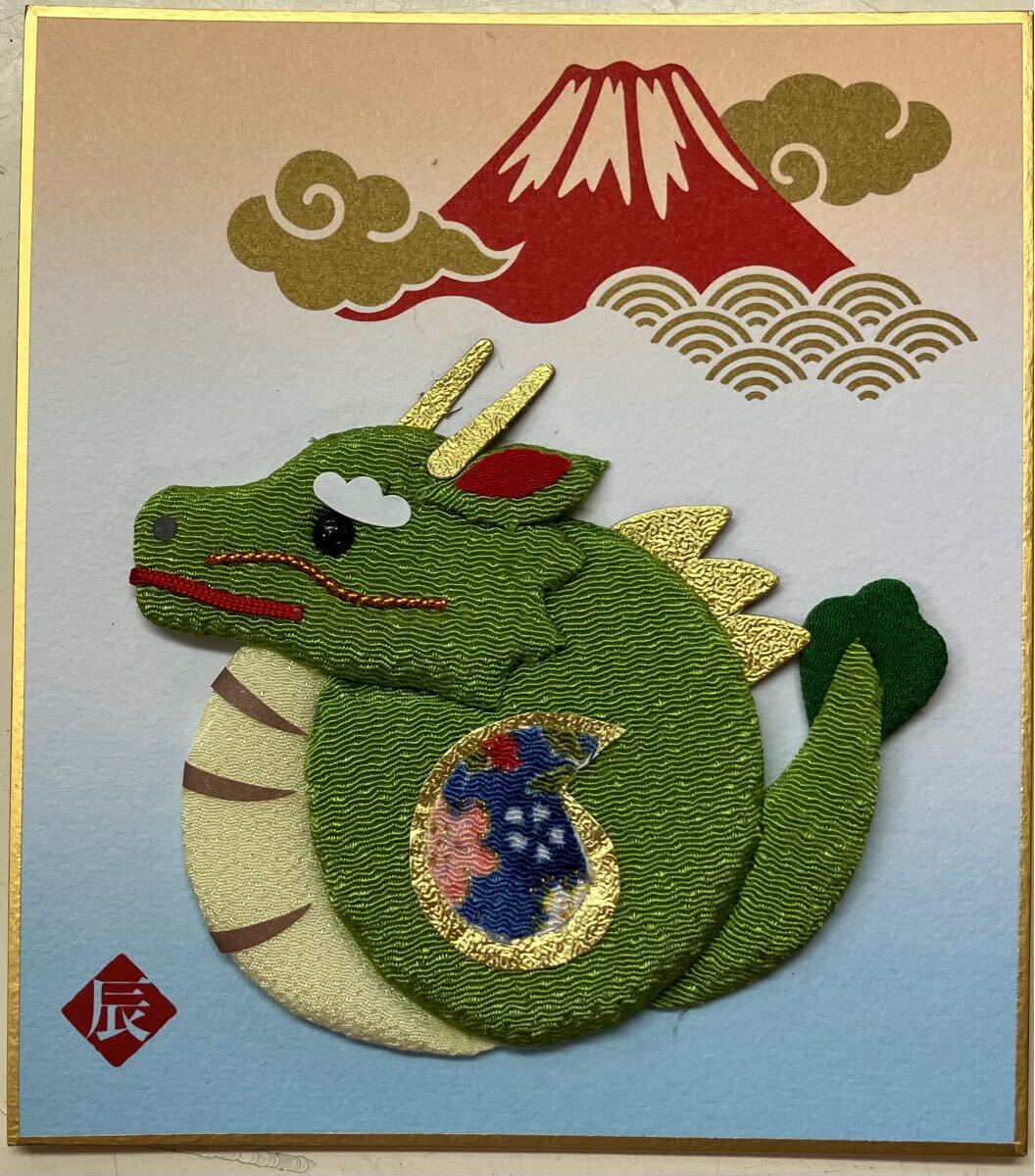商品名 : 布押絵 赤富士 雲竜 完成品 ハンドメイド(1/4色紙)