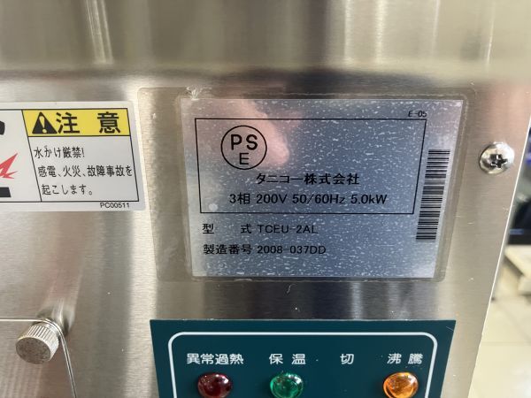 【中古】【タニコー】パスタゆで麺器 卓上型電気スパゲティーボイラー TCEU-2AL 幅400×奥行650×高さ290 三相200V(商品説明必読)