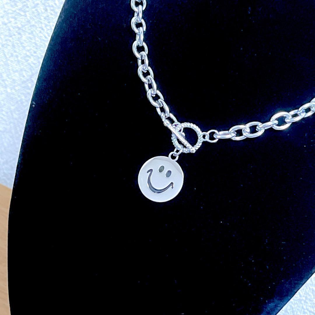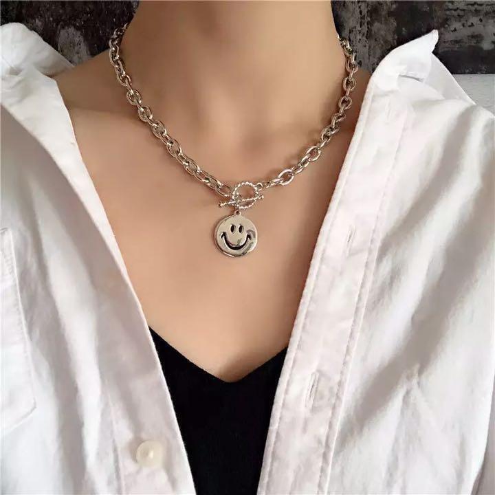 スマイルネックレス ニコちゃん 韓国 ロック シルバー メンズ レディース