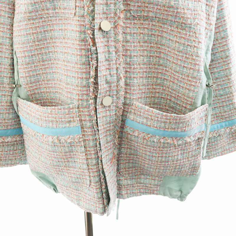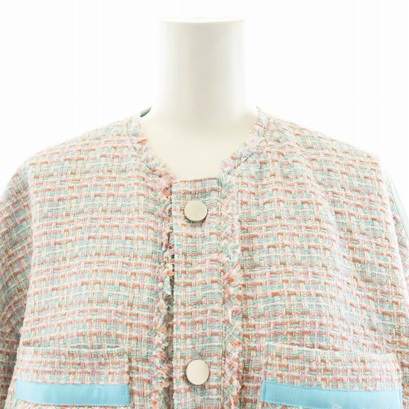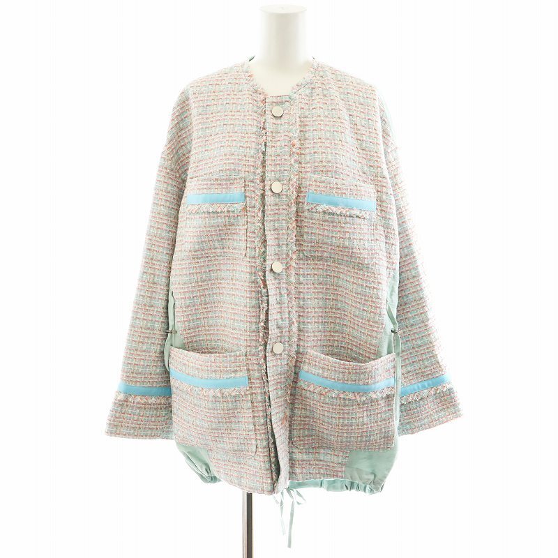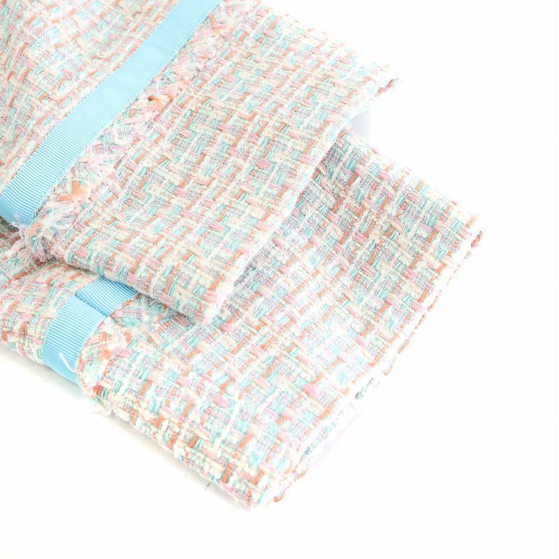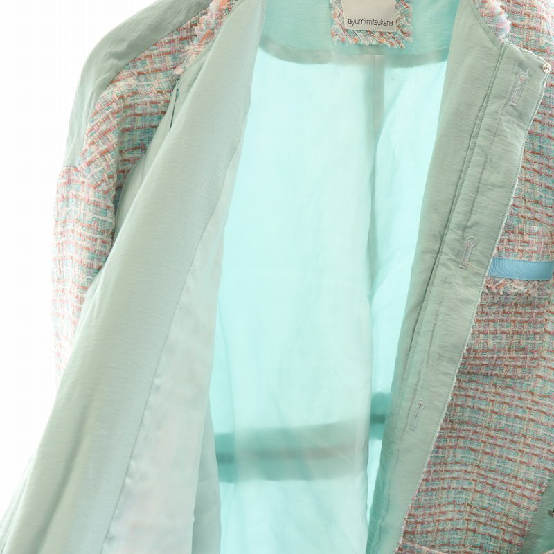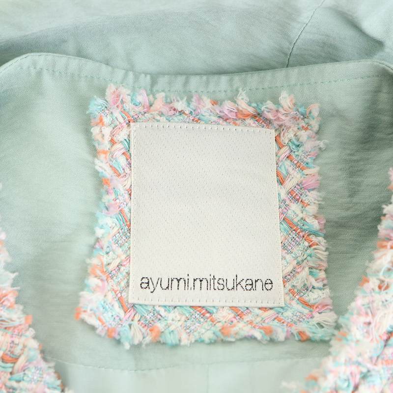 アユミミツカネ ayumi.mitsukane 24SS ノーカラージャケット ツイード 38 M ピンク 水色 ライトブルー /AN28 レディース