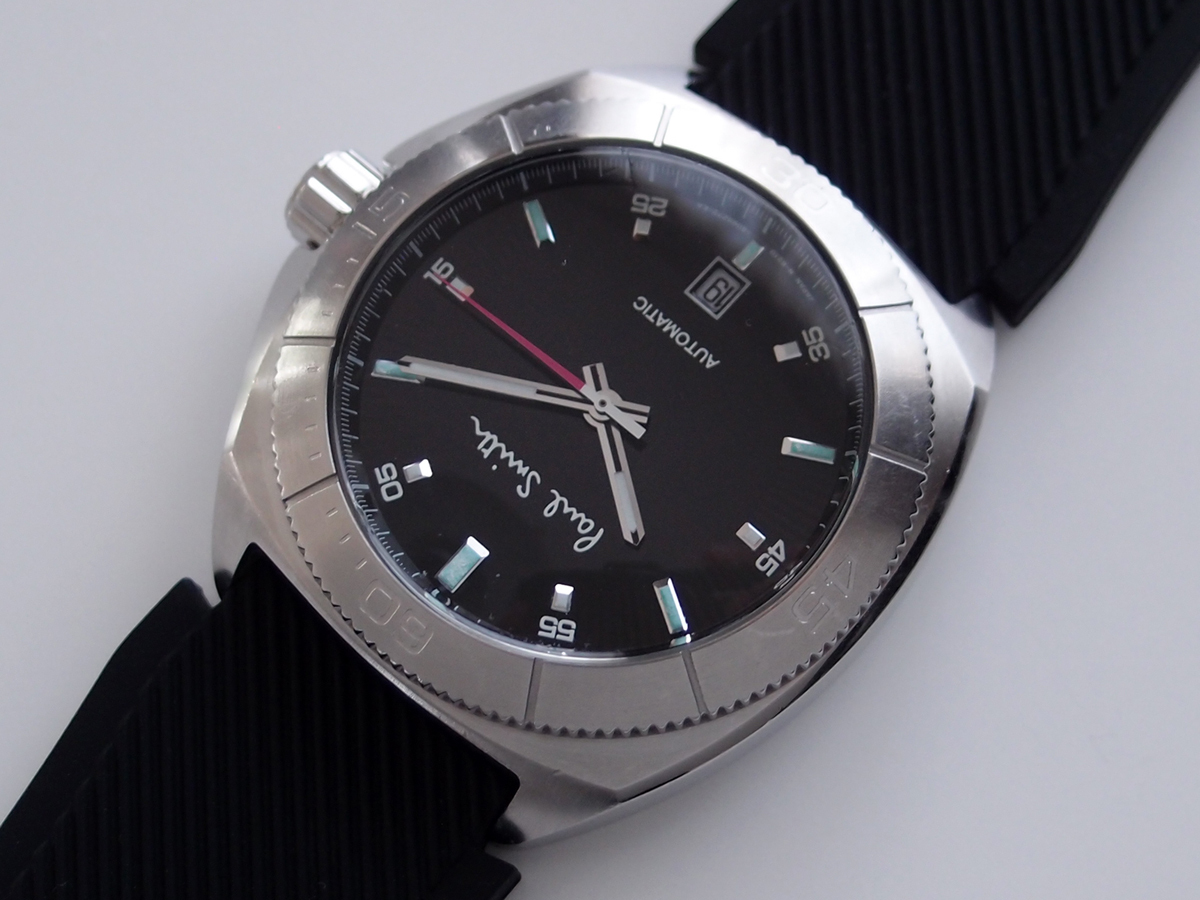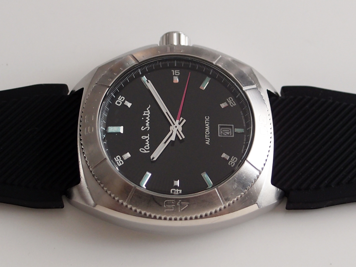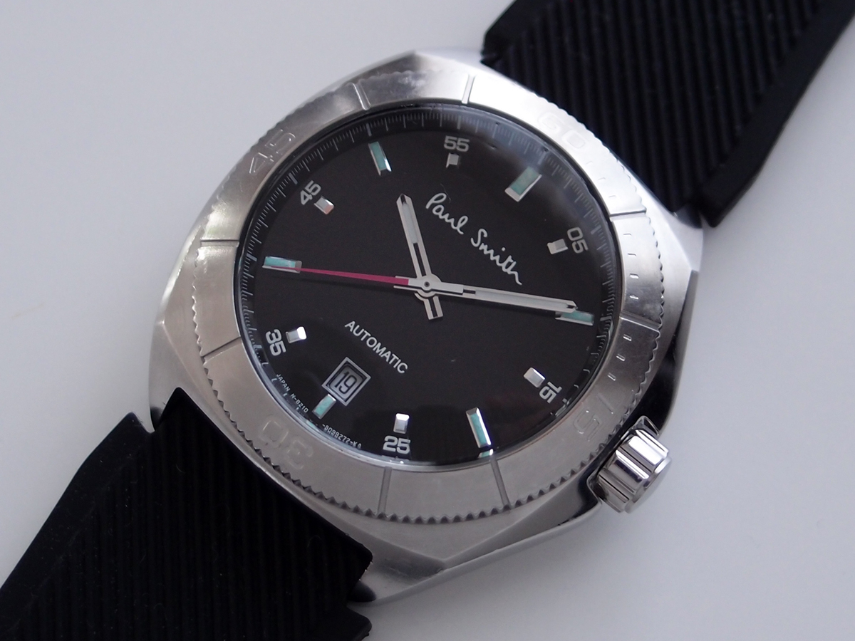 Paul Smith オートマチック ダイバー 6210です。稼動品。ムーブメントのメンテナンスを受けておりますので、安心してご使用頂けると思います。ケースサイズ:約縦47mm×横46mm。(竜頭含む)ベゼル径40mm。ラグ幅:22mm。コンディションですが、小キズはございますが、全体的にキレイな状態です。未使用社外シリコンが付いております。ノークレームにてよろしくお願い致します。