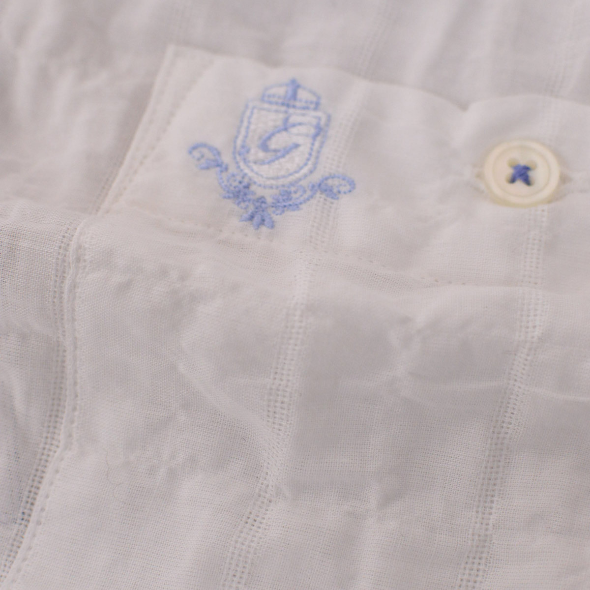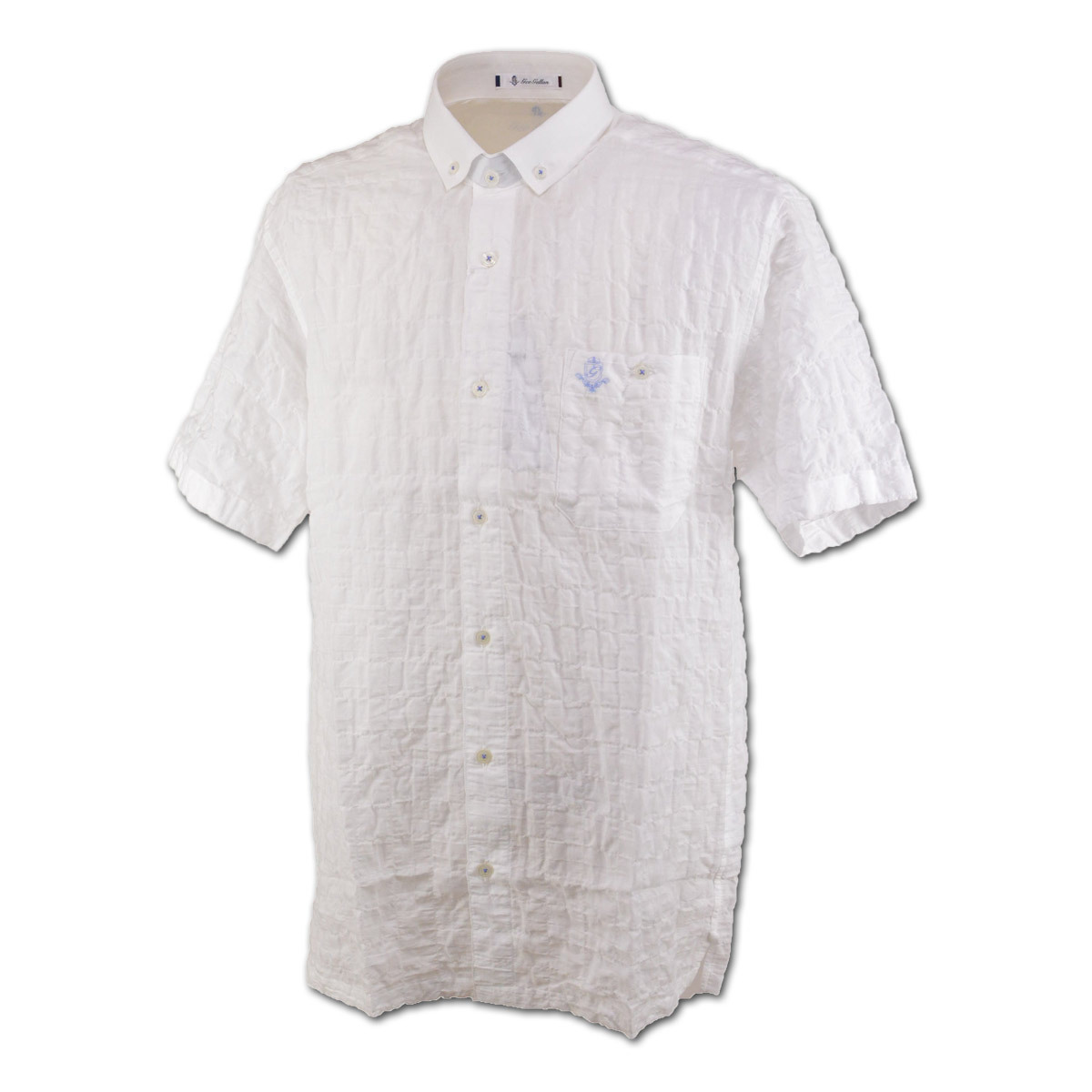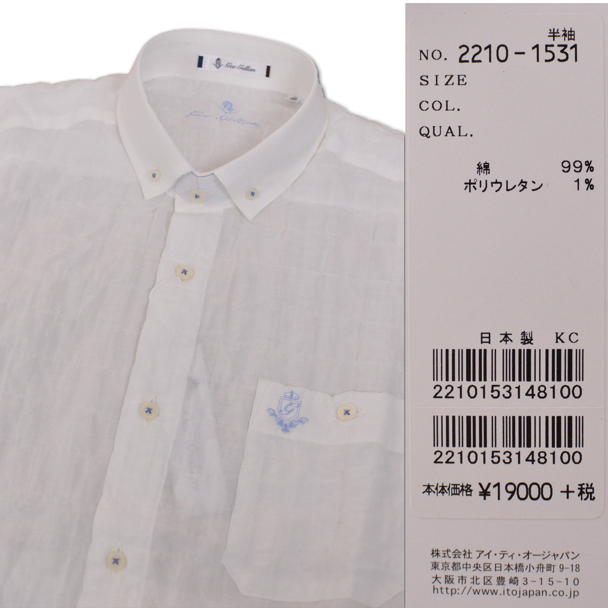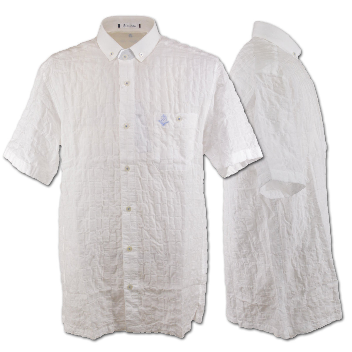 50%OFF【ゲラン】メンズ 半袖シャツ (46)M 白 2210-1531-10 GEE GELLAN セール サッカー素材 ボタンダウン 日本製 @