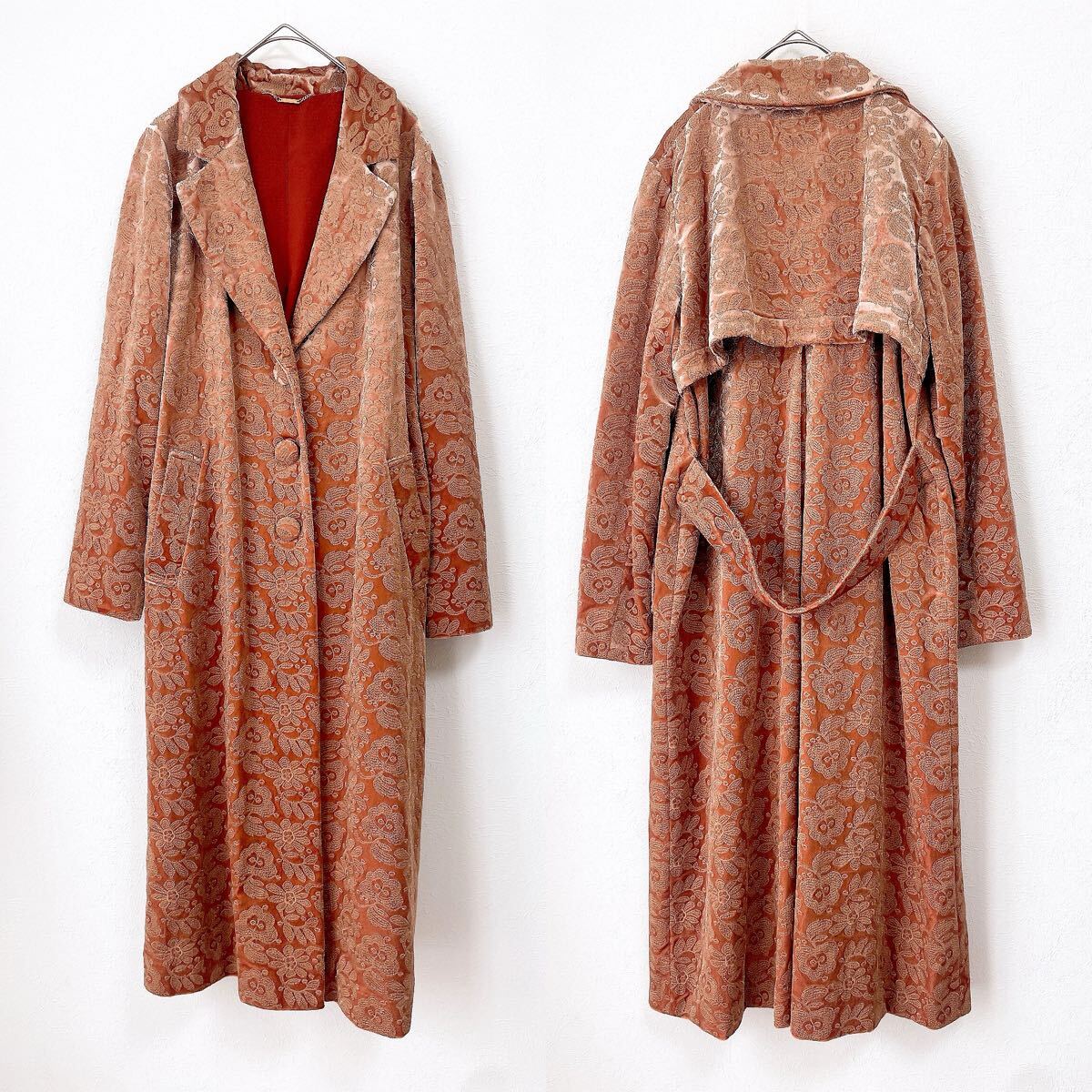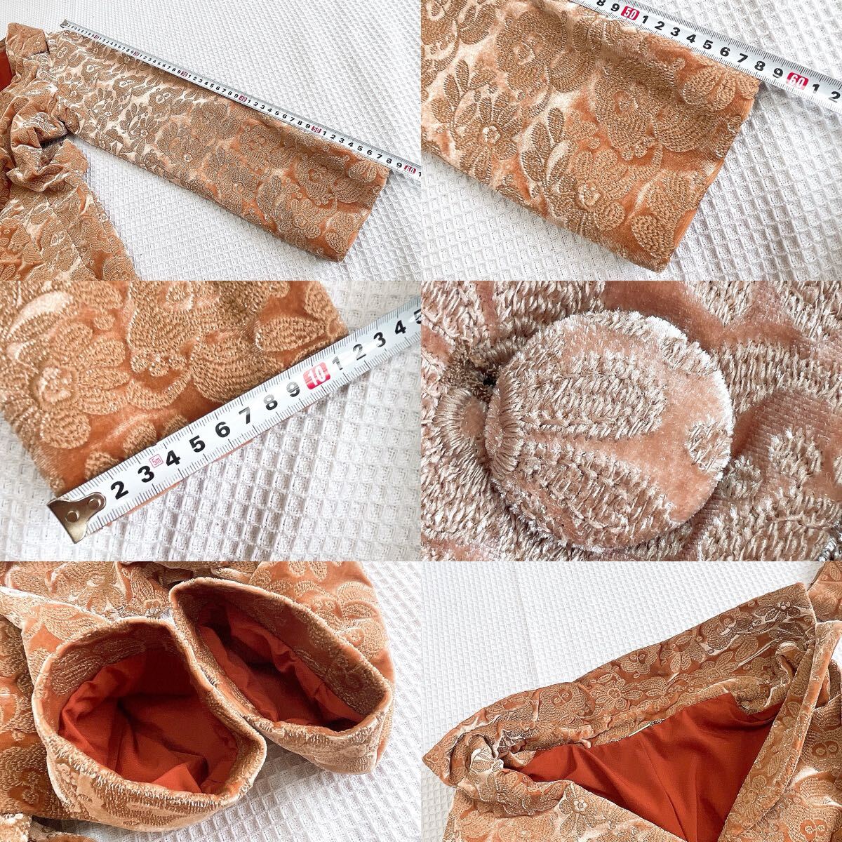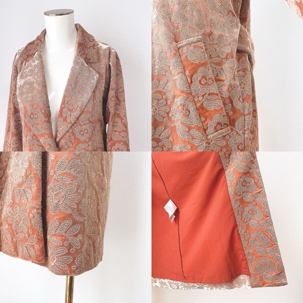 おしゃれ雰囲気いい女リリーブラウンLILY BROWNベロア刺繍コート花柄ガウン アウターMサイズ茶色テラコッタクラシック エレガント レトロ