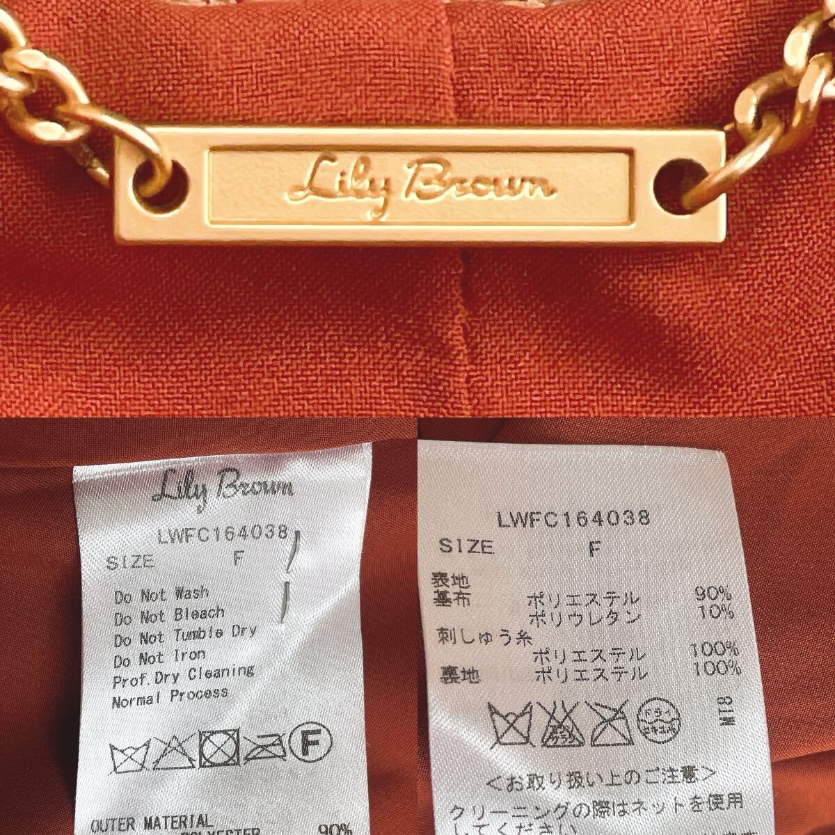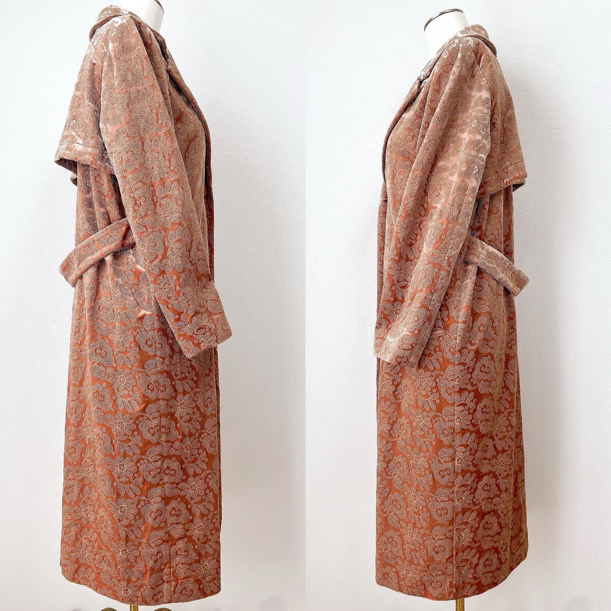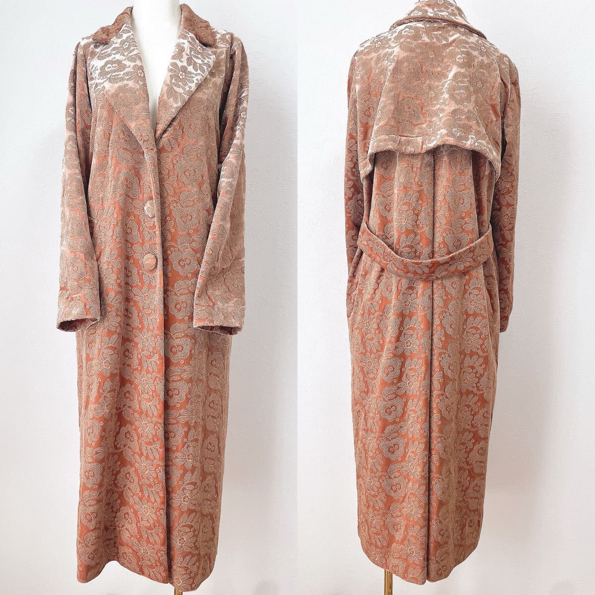 おしゃれ雰囲気いい女リリーブラウンLILY BROWNベロア刺繍コート花柄ガウン アウターMサイズ茶色テラコッタクラシック エレガント レトロ