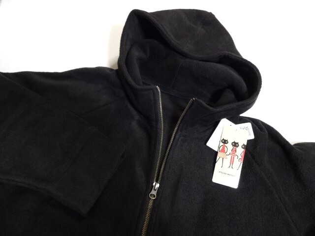 新品 未使用 ATSUKO MATONO ポケットに猫 フリース パーカ F 黒 アツコマタノ ネコ 隠れてる 暖か 大きいサイズ ブラック