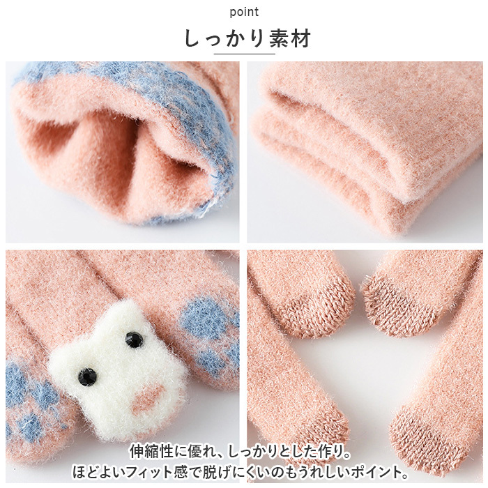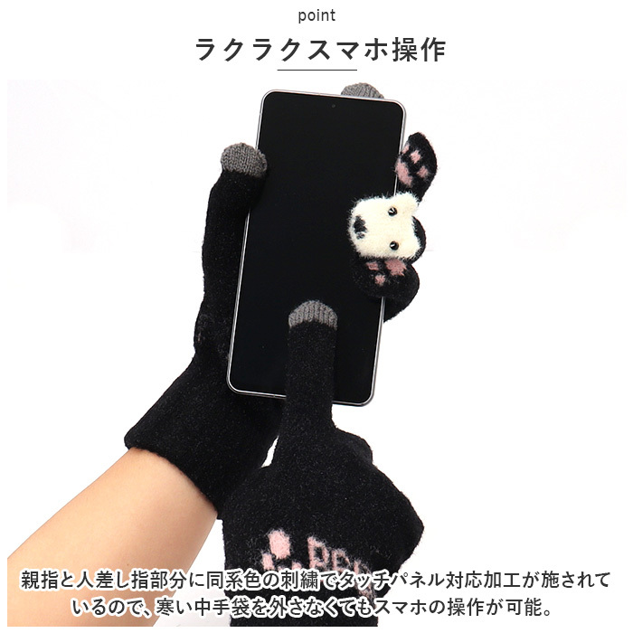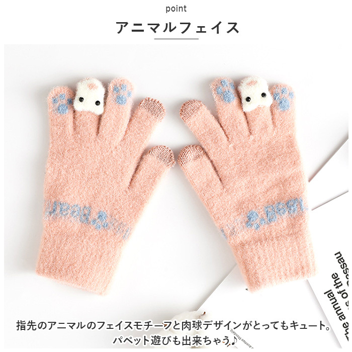 商品説明 | ・・カワイイだけじゃない♪スマホも使える、ふんわり暖かい手袋♪ ・【アニマルフェイス】 ・指先のアニマルのフェイスモチーフと肉球デザインがとってもキュート。パペット遊びも出来ちゃう♪ ・【ラクラクスマホ操作】 ・親指と人差し指部分に同系色の刺繍でタッチパネル対応加工が施されているので、寒い中手袋を外さなくてもスマホの操作が可能。 ・【しっかり素材】 ・伸縮性に優れ、しっかりとした作り。ほどよいフィット感で脱げにくいのもうれしいポイント。 ・【デイリーに活躍】 ・寒い冬、通学時やデートなど色々なシーンで活躍。小さなお子様とのお出かけにも活躍の予感! ・【プレゼントにもおススメ】 ・誕生日など、お祝いのプレゼントにもオススメ☆ |