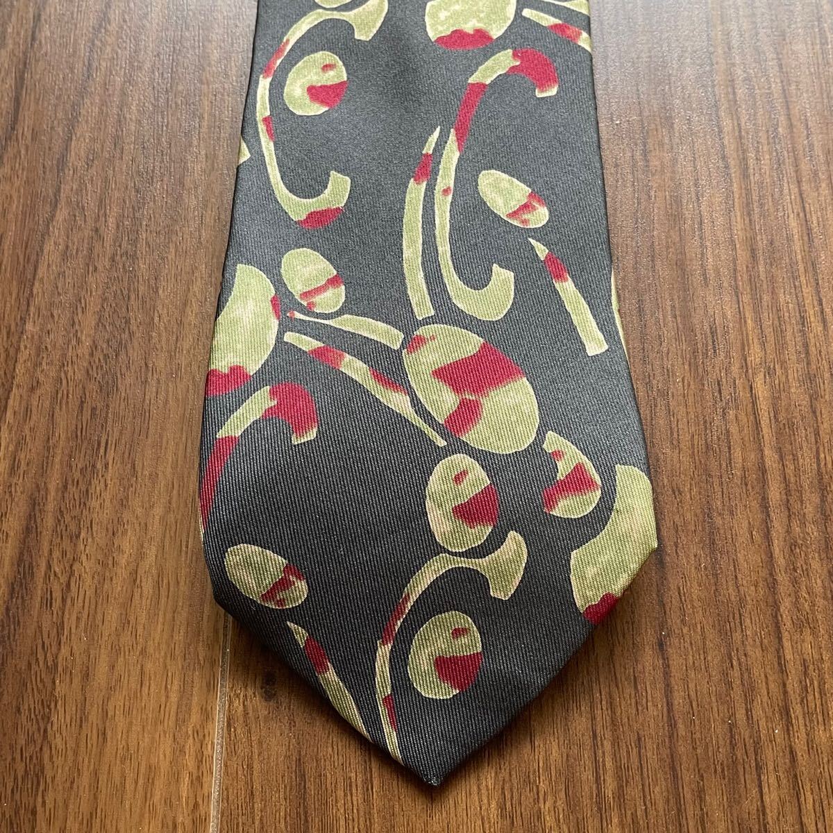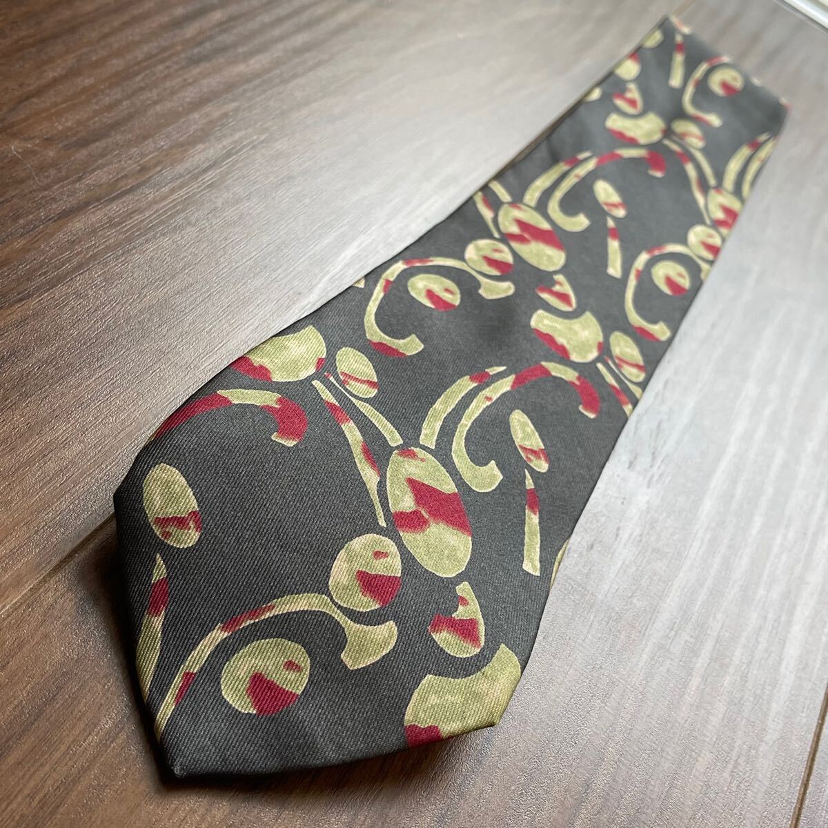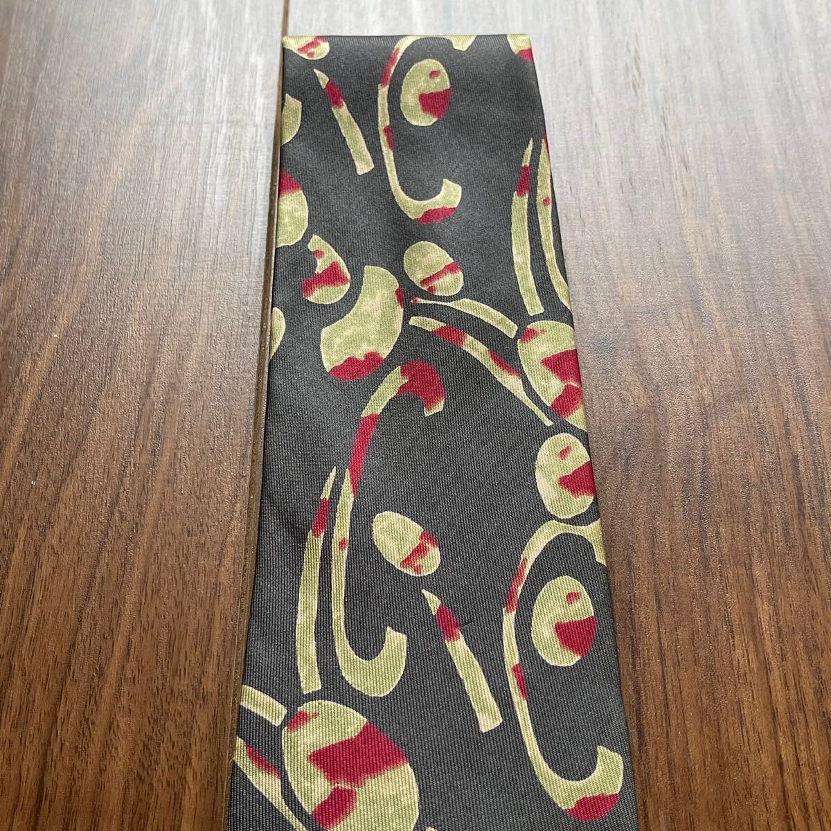 グレー緑赤模様ネクタイ