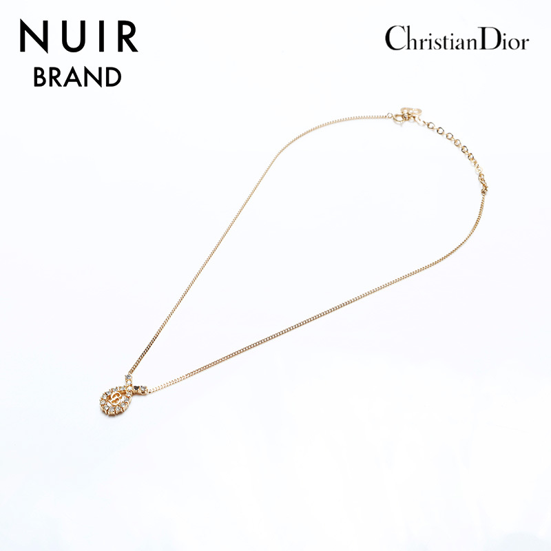 クリスチャンディオール Christian Dior ネックレス ヴィンテージ CDロゴ ラインストーン ゴールド