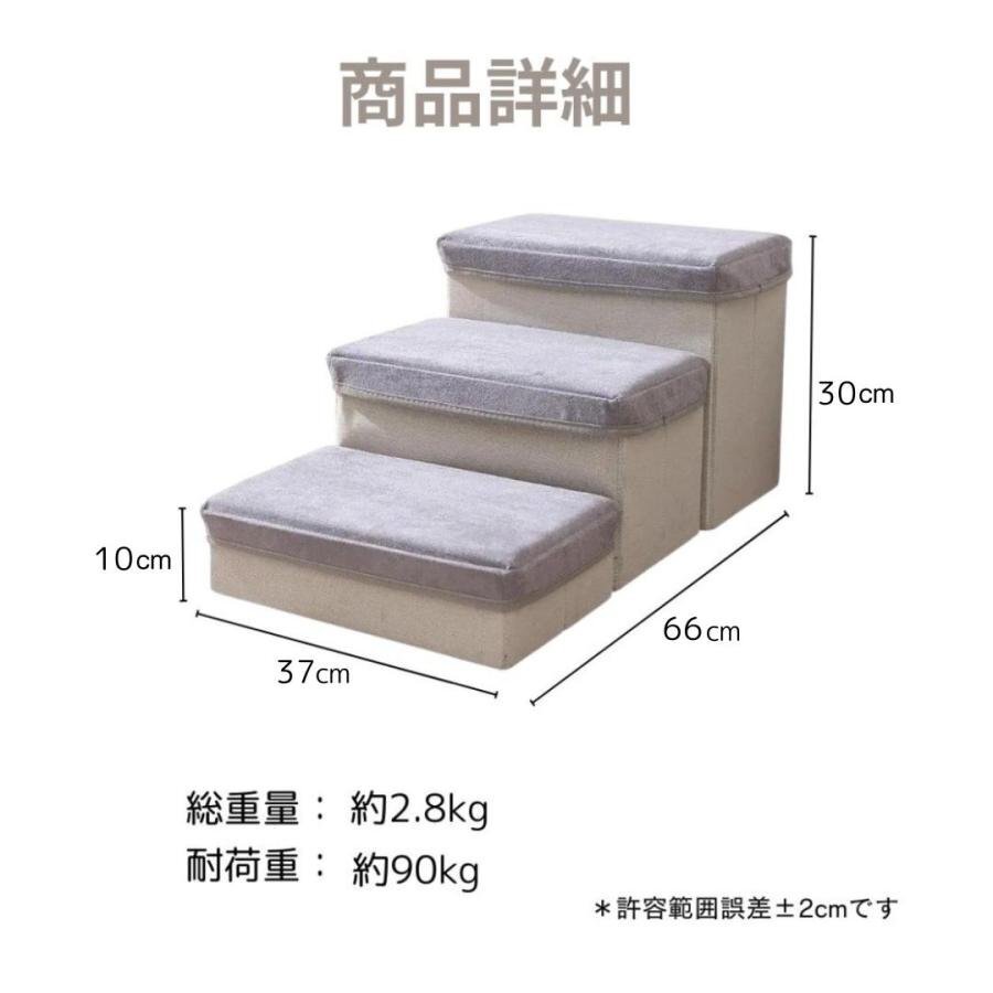また、こちらのペットステップは収納ボックスになっています。ペットのおもちゃ、タオル、お手入れ道具などペット用品を収納でき省スペースで便利です