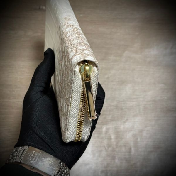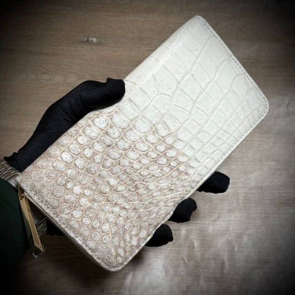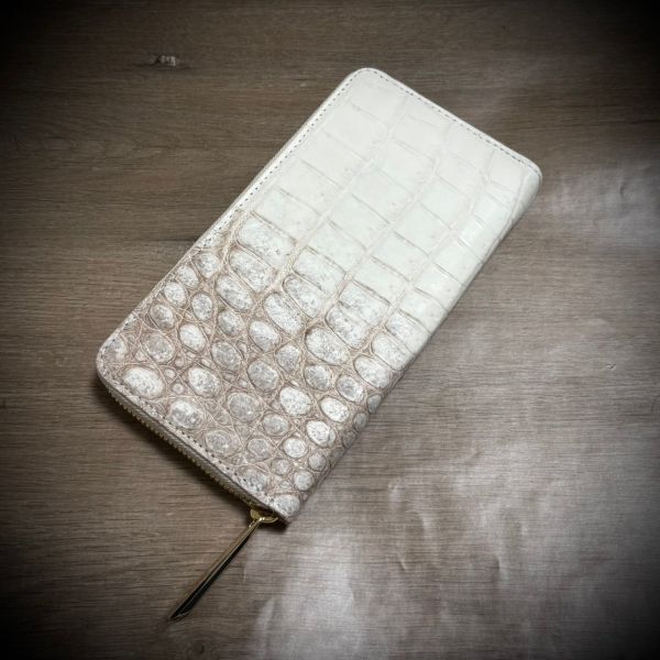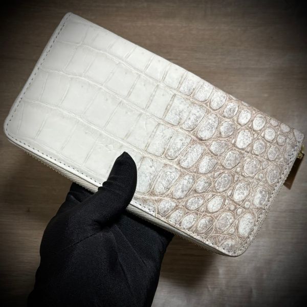 ※他販路でも販売している為 予告なく出品を取り消す場合があります。 ご了承ください。 【セレブが愛するヒマラヤクロコ】 世界中のセレブ達から愛され続けている ヒマラヤクロコダイル。 ヒマラヤクロコダイルはヒマラヤ山脈の 雪解けをイメージし自然が織りなす グラデーションを再現したものです。 そのヒマラヤクロコダイル革で最も 価値のある腹部を使用し継ぎ目のない 一枚革仕様。 表面はマット加工し、手にしっとりと 馴染みます。 この美しい素材を実際に手に取り 味わってください。 【本物である証明】 こちらの商品は100%クロコダイル革を 使用した『本物のクロコダイル』商品です。 本物である証明書類として『CITES』の コピーを同封致します。 ■ サイズ(外寸) 縦: 約10.5cm 横: 約20.5cm マチ:約2.5cm ■ 重量 約210g ■ スペック カードポケット × 15 札入れポケット × 3 フリーポケット × 2 ■ 素材 革/クロコダイル革 シャムワニ種 内装革/牛革、ポリエステル ■ カラー② ヒマラヤクロコダイル ※こちらの商品は1点1点表情の 異なる商品です。商品画像は