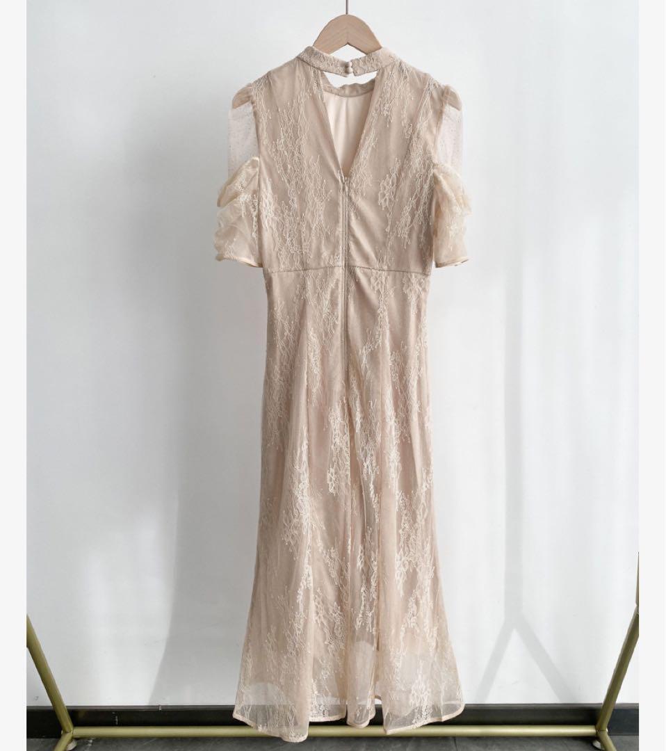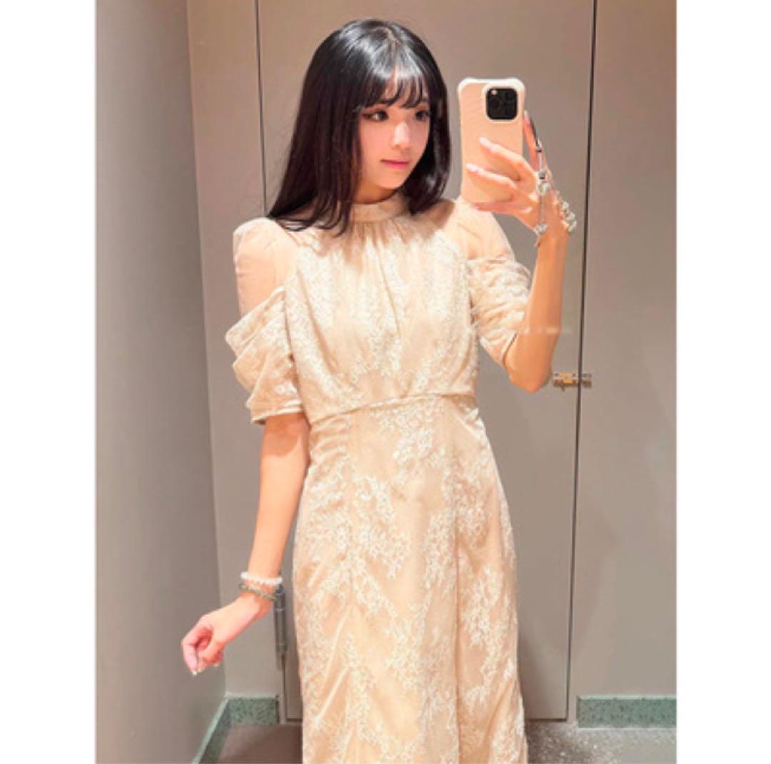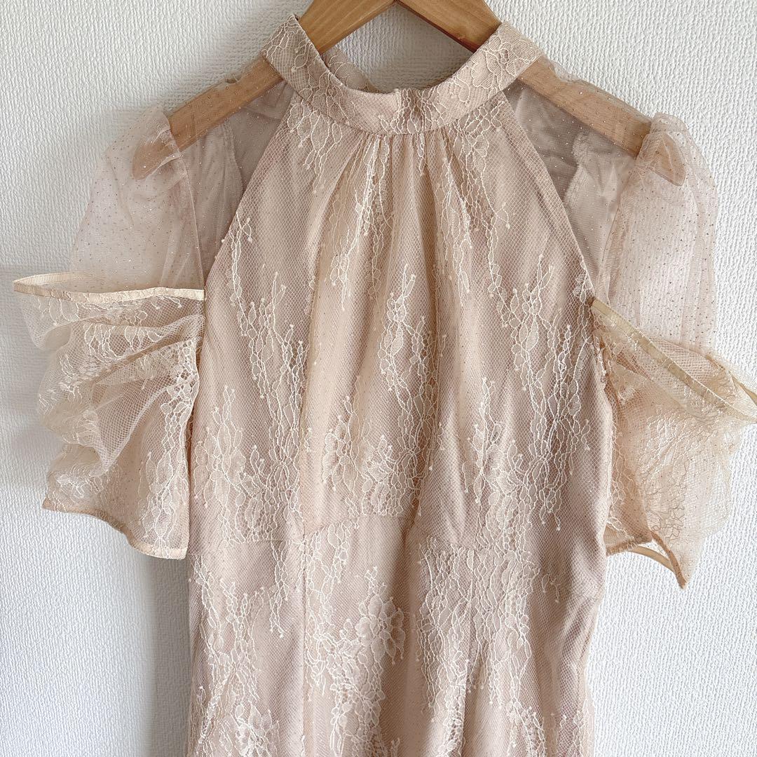 ラメ入りで華やかな印象の、ハイウエストワンピース
