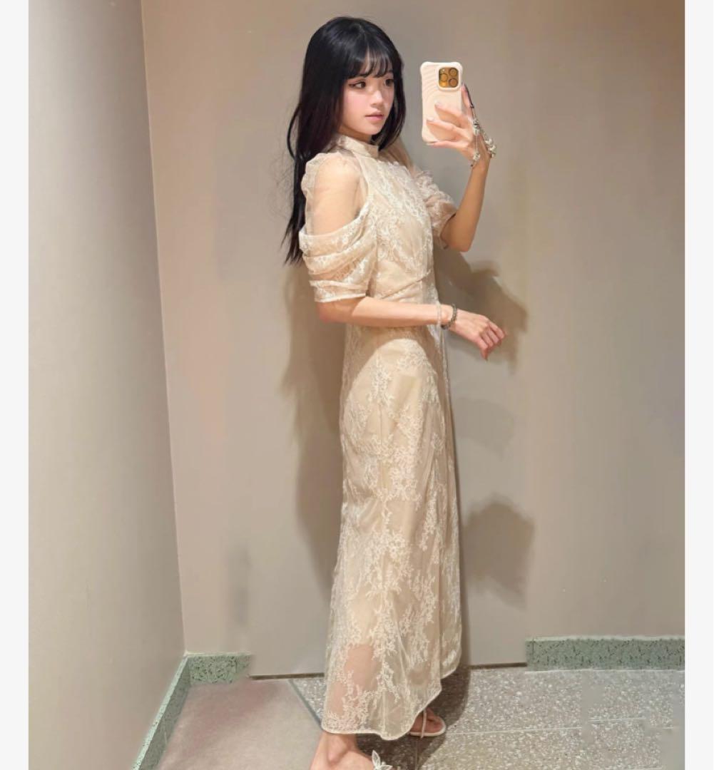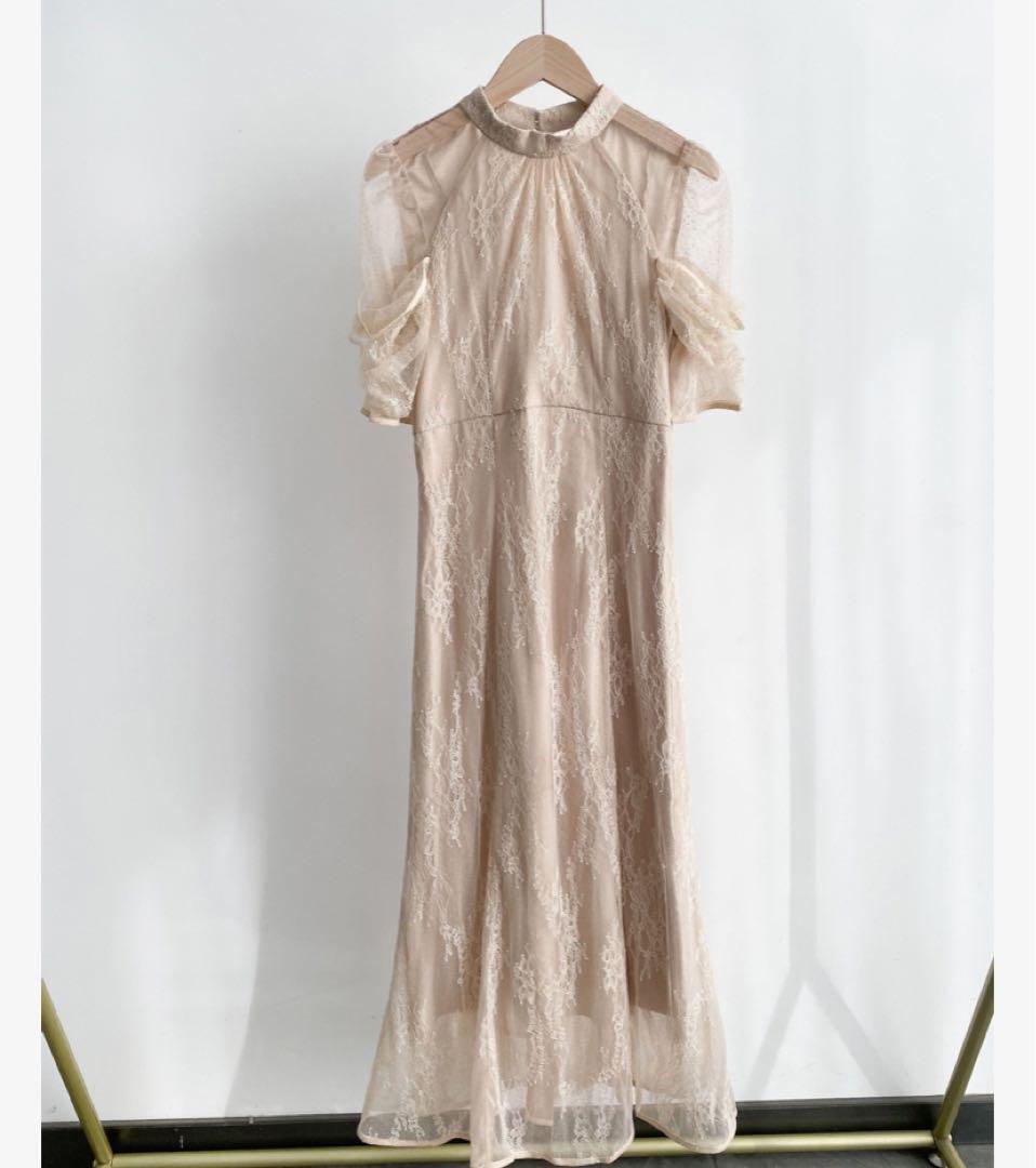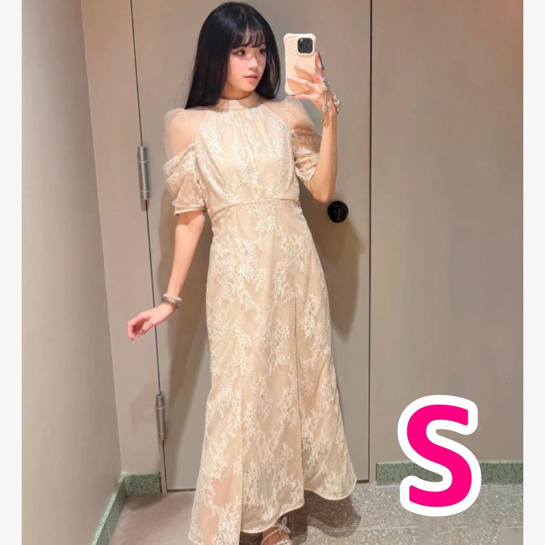 ラメ入りで華やかな印象の、ハイウエストワンピース