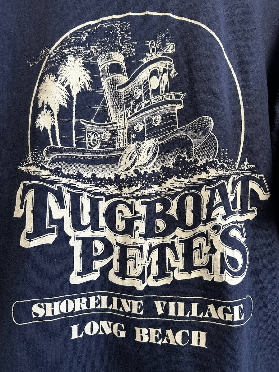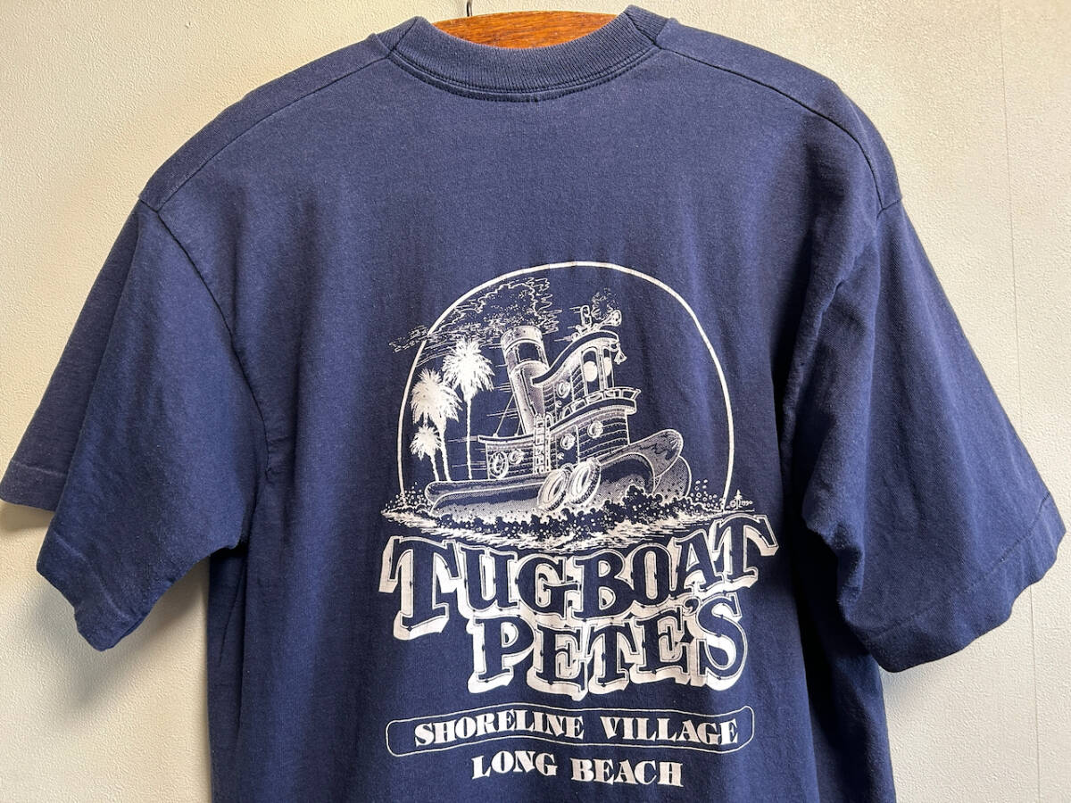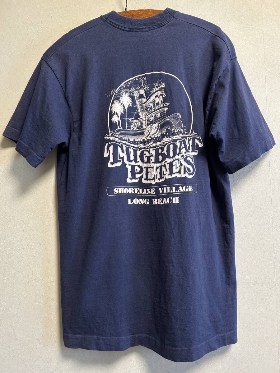 80s 90s US生地 LA ヴィンテージ SHORELINE VILLAGE スーベニア ネイビー Tシャツ ショアライン ビレッジ LONG BEACH ロングビーチ