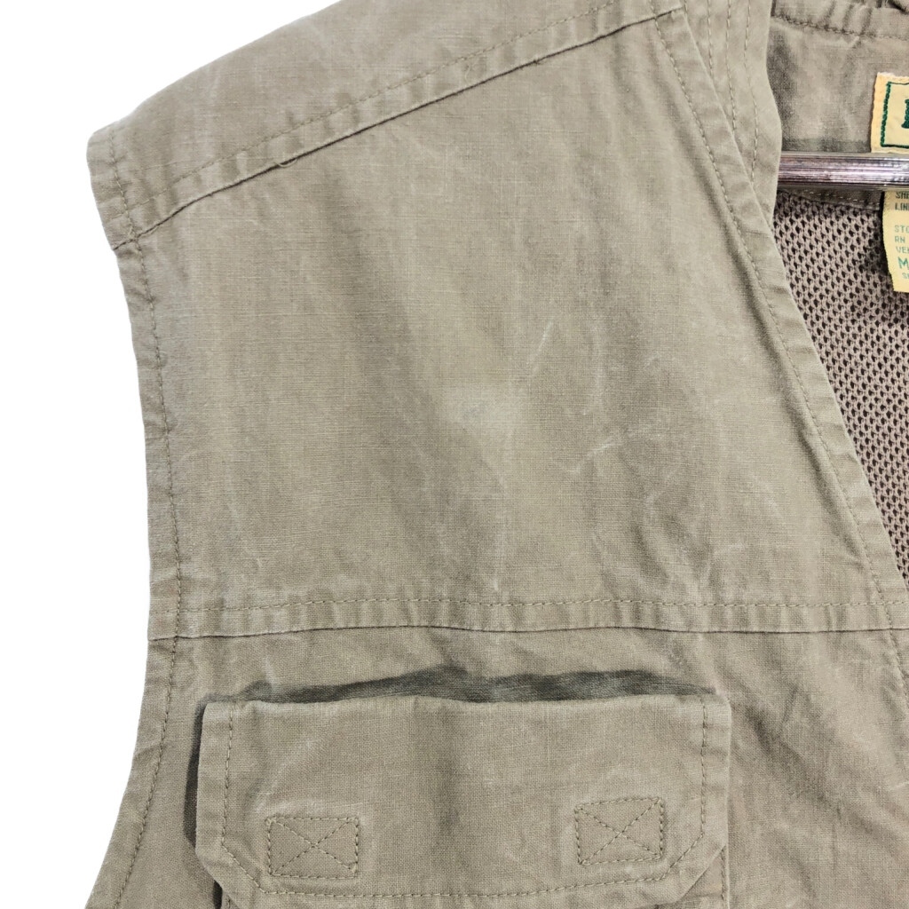 [商品管理番号] S9666 [ブランド] L.L.Bean/エルエルビーン [サイズ] LARGE [実寸サイズ] 肩幅:約49cm 着丈:約69cm 身幅:約59cm [主な素材] 表地 : コットン 裏地 : 13897 [色] ベージュ [仕様] 90年代 アジャスター、裏地メッシュ アウトドア [状態] 汚れ:腰裏地 特記事項:色褪せ、首元ヨレ | |||