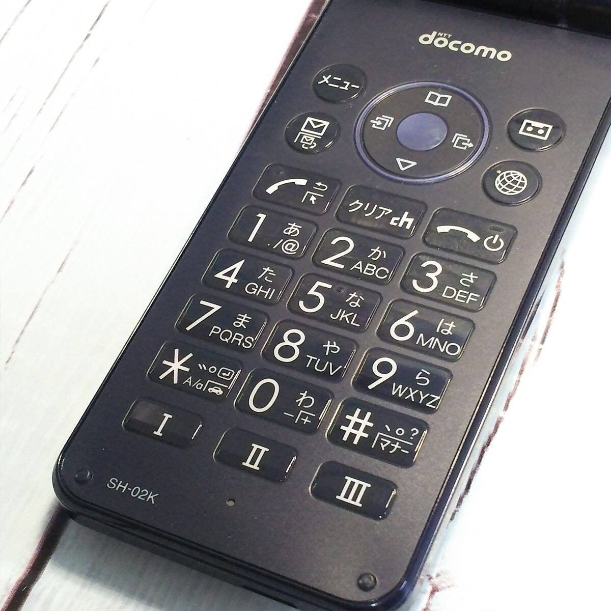 docomo SHARP カメラレスケータイ SH-02K ブルーブラック ネイビー 本体 白ロム SIMロック解除済み SIMフリー C201730