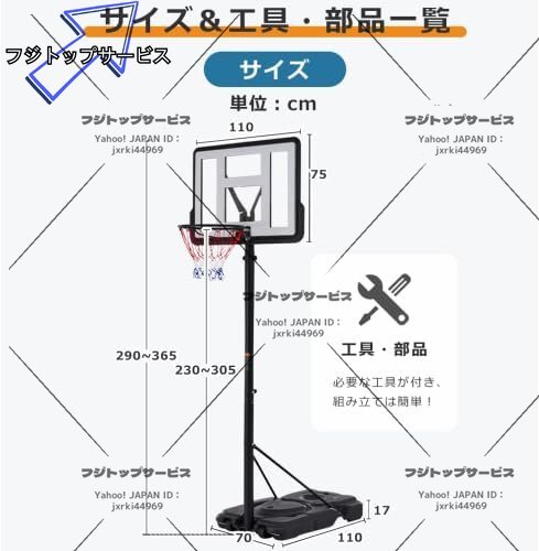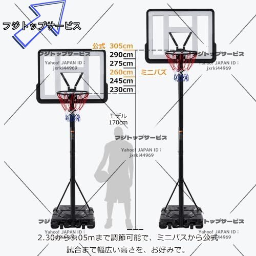 バスケットゴール 高度 305cm 7号球対応 屋外 室内 バスケットゴール 簡易 調節可能 移動式 練習用 バスケットボール 自立式 工具付き