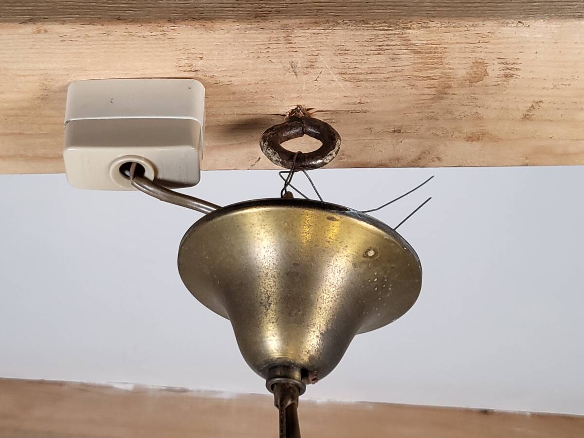 また、電球は付属しませんがE14口径の一般的な電球ですのでご用意ください。雰囲気良く、お部屋のインテリアからショップ等のディスプレイとして大変おすすめです。状態ですが、メタル部分に金属劣化や錆、、シェードに小傷や擦れ、汚れ等の使用感はありますが雰囲気を損なう様な目立つダメージもなく問題ない状態かと思います。ただあくまでアンティークになりますのでご理解いただける方のご購入をお願いします。