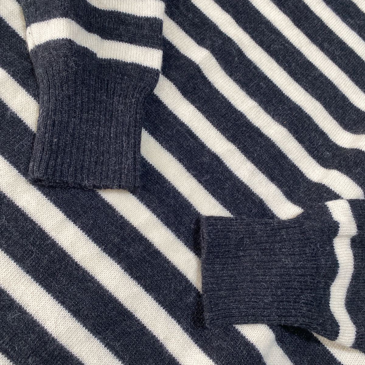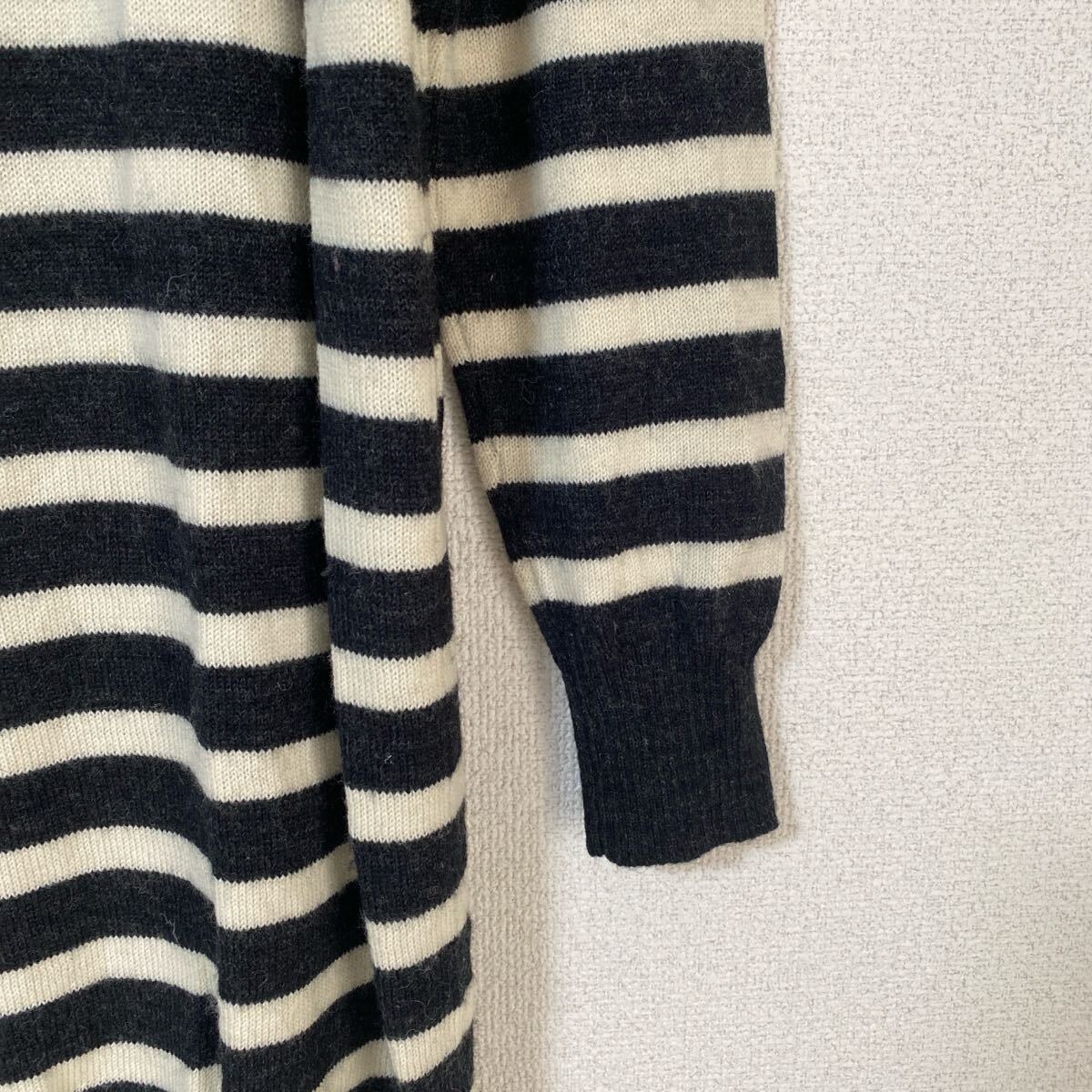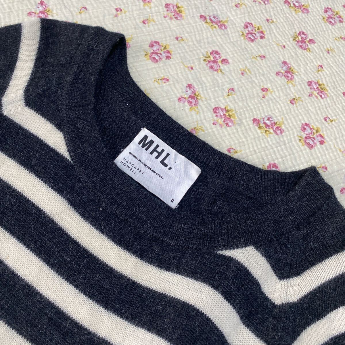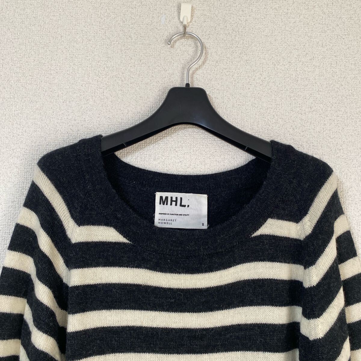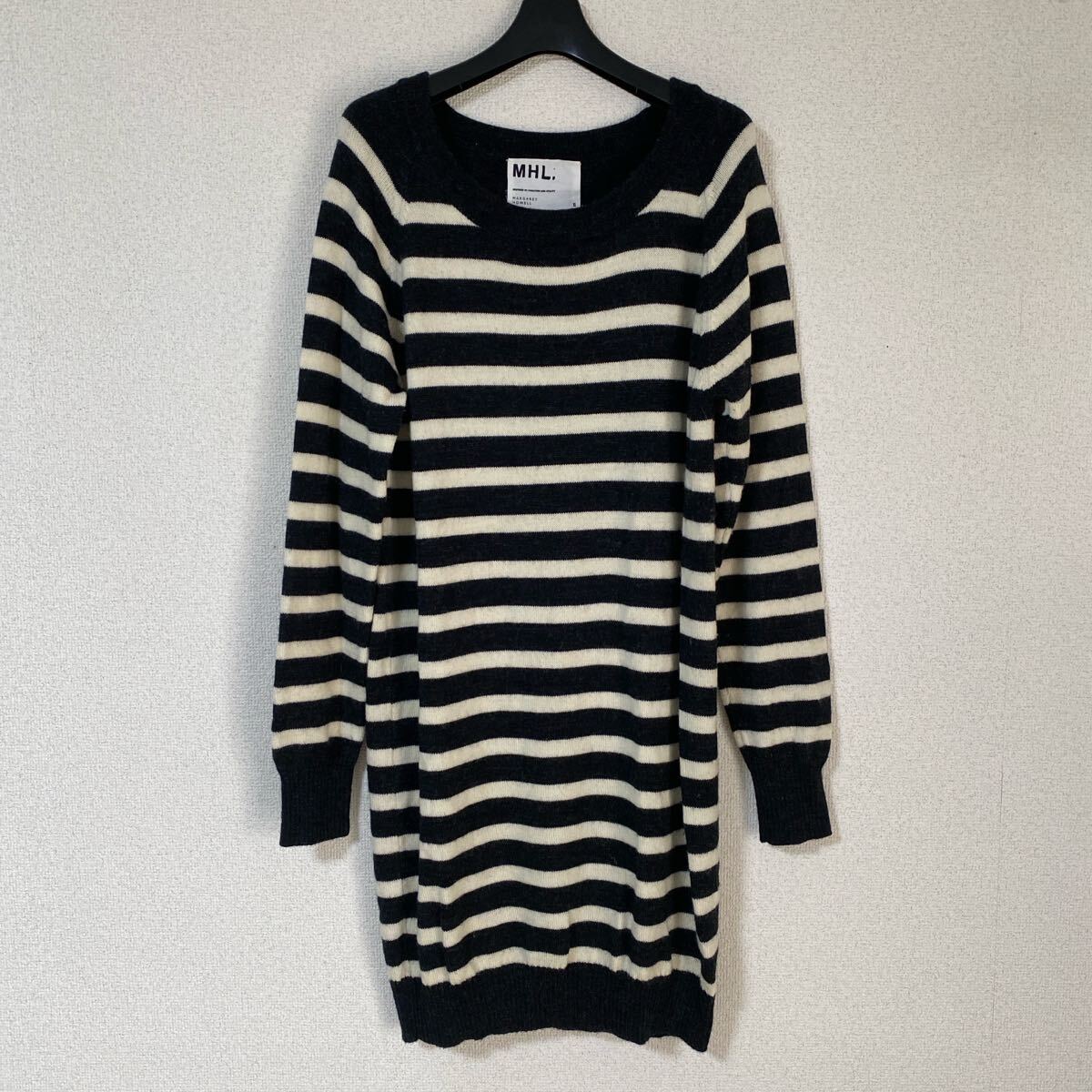 MHL. (MARGARET HOWELL)(マーガレット・ハウエル)のお品です。MARGARET HOWELLのカジュアルラインとして生まれたMHL.。秋冬にぴったりのしっかりとした伸縮性のある、厚手のウール素材、長袖ニットワンピースです。チュニックとしても着用可能です。すっきりとした美しいシルエットです。上品に清楚な雰囲気で着こなせます。ウール(毛)素材の、上質生地が使われています。お色は画像でご確認下さい。黒×白、ボーダーです。実際のお色が良く出ています。染み、汚れ、ほつれのないとてもきれいなお品です。MHL. の品質をそのままお楽しみいただけます。暖かみのあるデザインがコーディネートのアクセントになります。