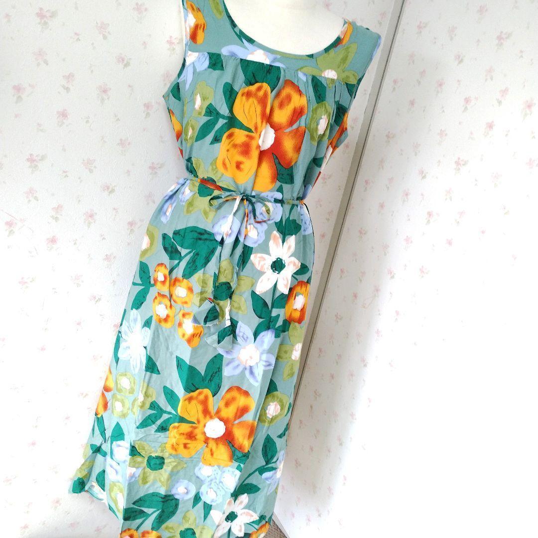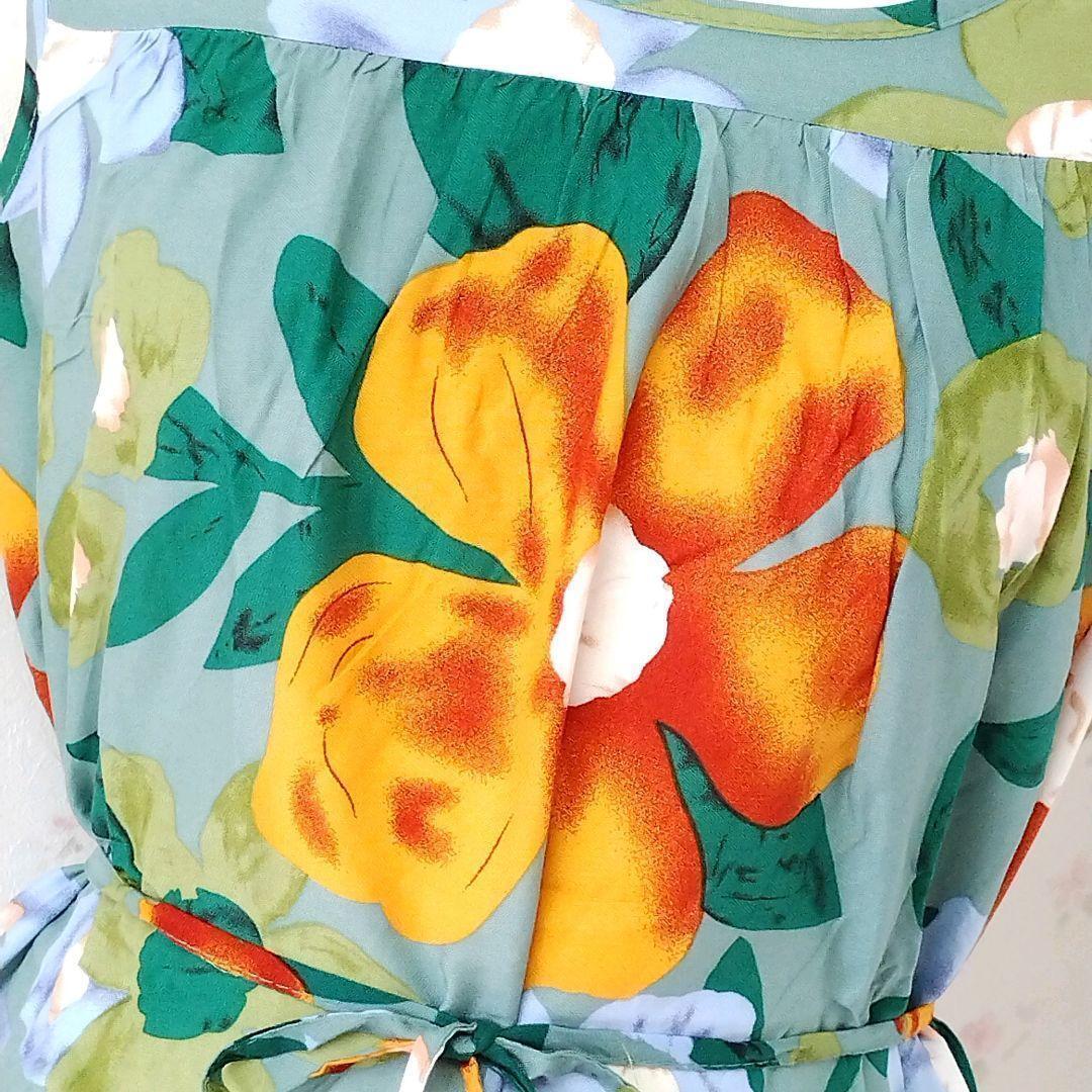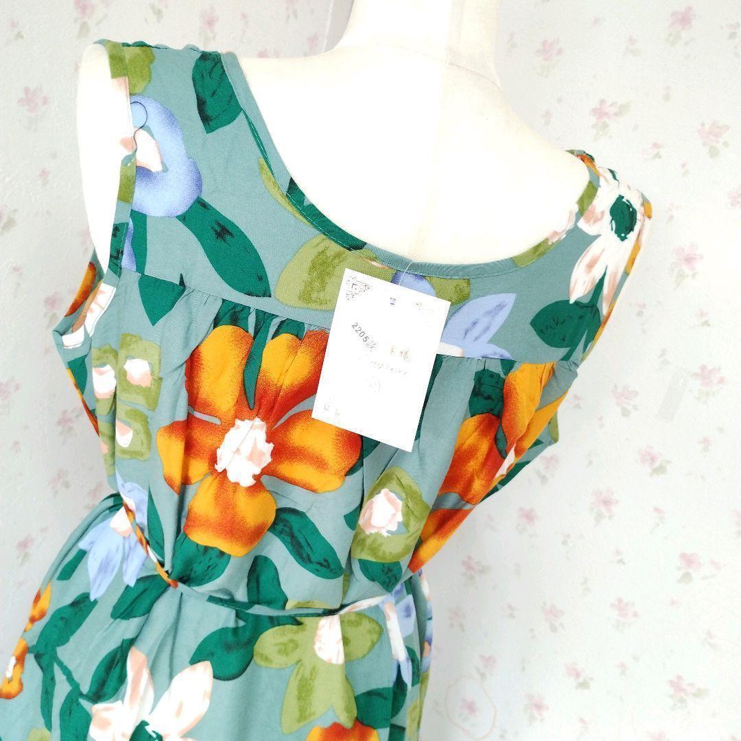 【グリーン花柄★Lサイズ】袖なし ロングワンピースレディース