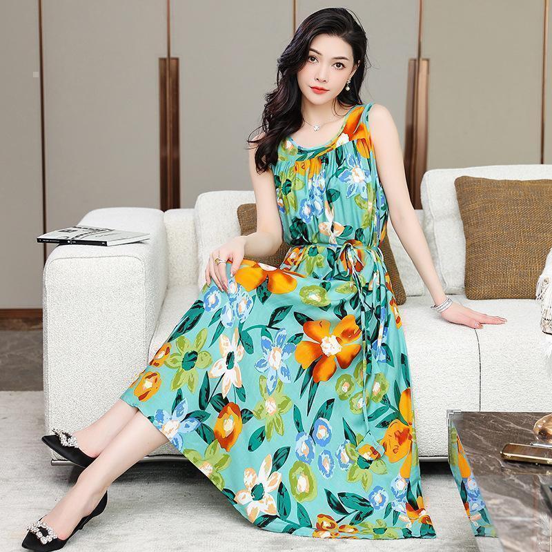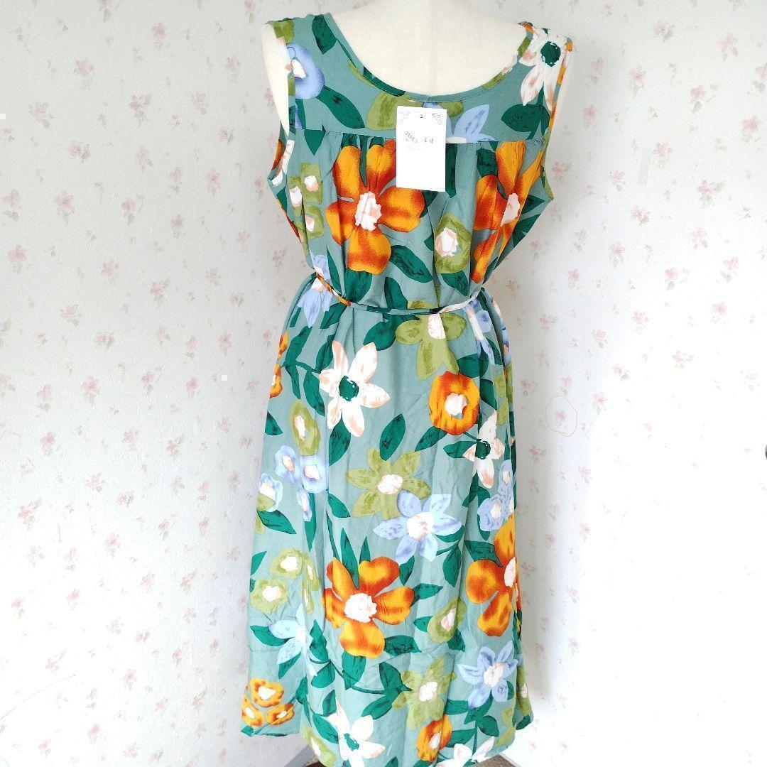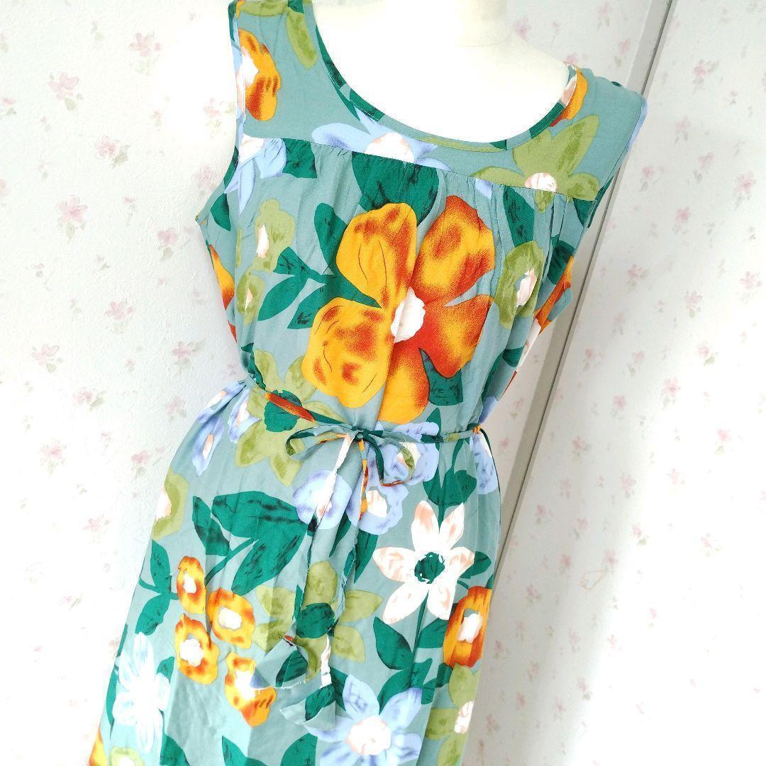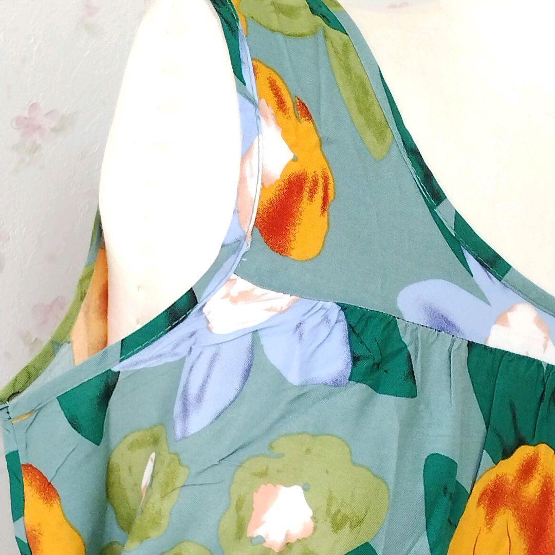 【グリーン花柄★Lサイズ】袖なし ロングワンピースレディース