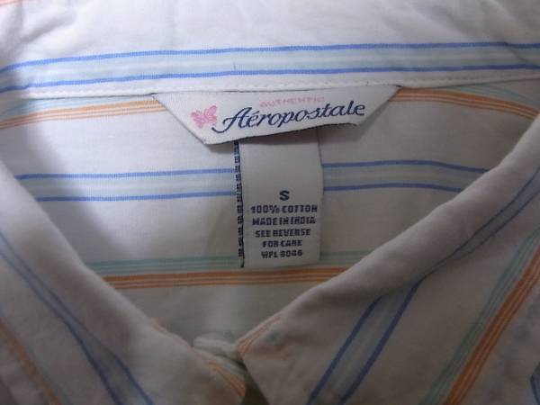 即決!レディース●USA古着●エアロポステールストライプデザインシャツS!アメカジビンテージ!アメリカで買ってきましたユーズドのストライプデザイン長袖シャツです。タグは、近年人気急上昇中のアメカジブランド、エアロポステールになります。カラーは写真を参考にして下さい。表記サイズSで着丈(後ろ)約54cm、身幅約42cm、袖丈(肩から袖先)約59.5cmです。素人採寸ですので多少の誤差はご了承お願い致します。状態は古着ですので、ある程度の着用感あります。特別目立つキズ、よごれはありませんが、あくまで古着として考えてください。古着にご理解のある方の入札お願いします。定型外郵便または、ゆうパック着払いでの発送になります。他にもいろいろ出品しています。よろしくお願いします。
