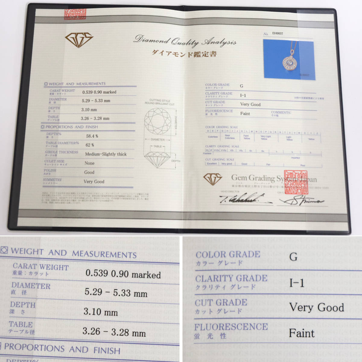 | ■ K18PGダイヤモンドネックレス D0.539 D0.90 4..7g 鑑定書 ■ | |||||||||||||||||||||||||||||||||